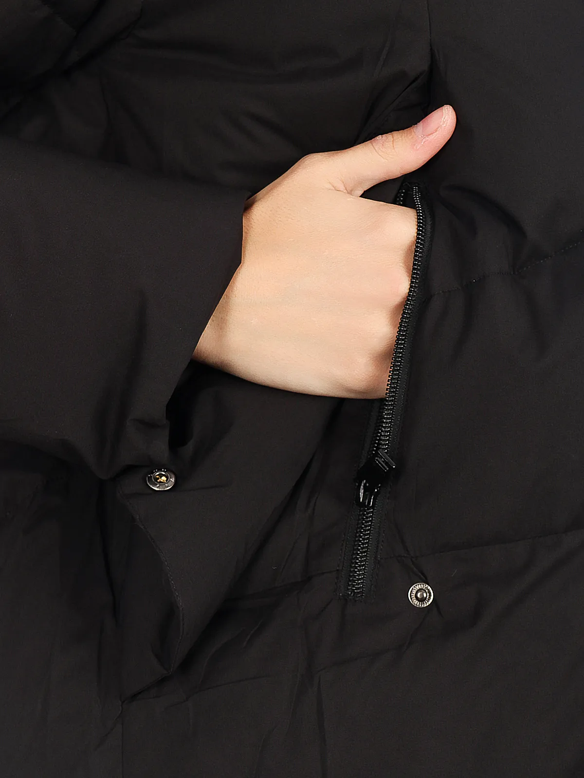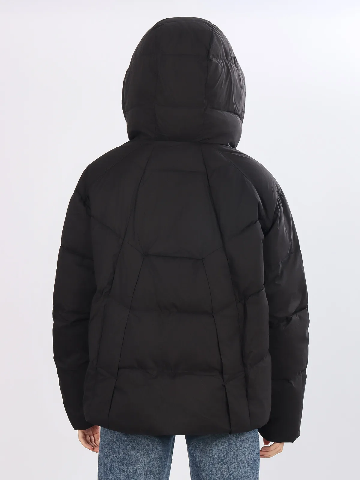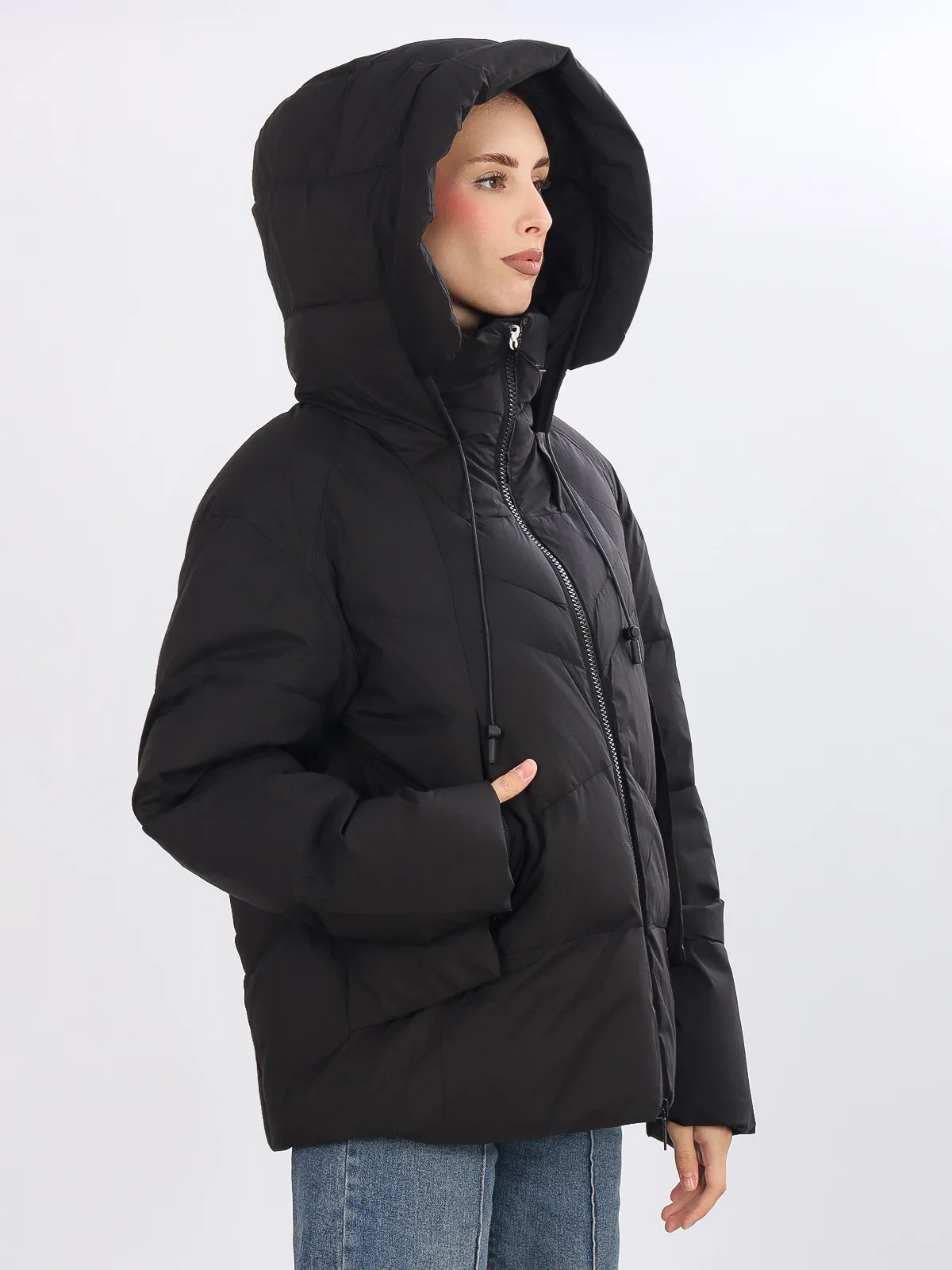 Объемный капюшон не только придает куртке модный вид, но и надежно защищает от ветра и снега, сохраняя комфорт даже в суровых погодных условиях.