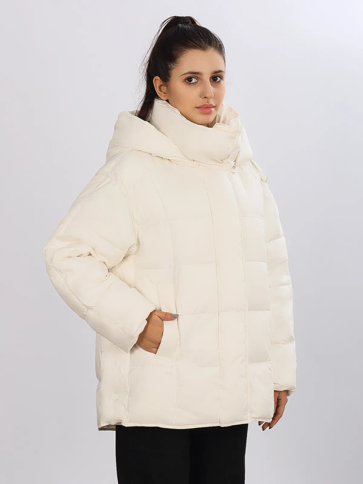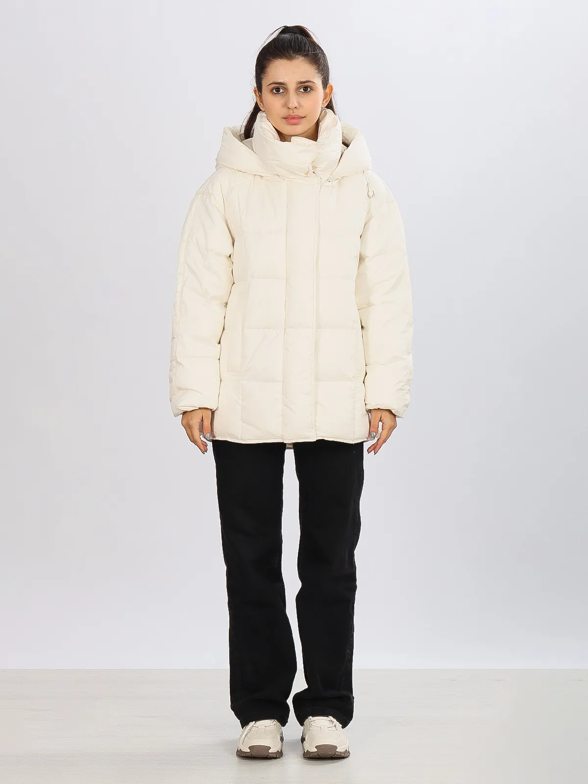 • Высокий воротник-стойка: защита шеи от холода