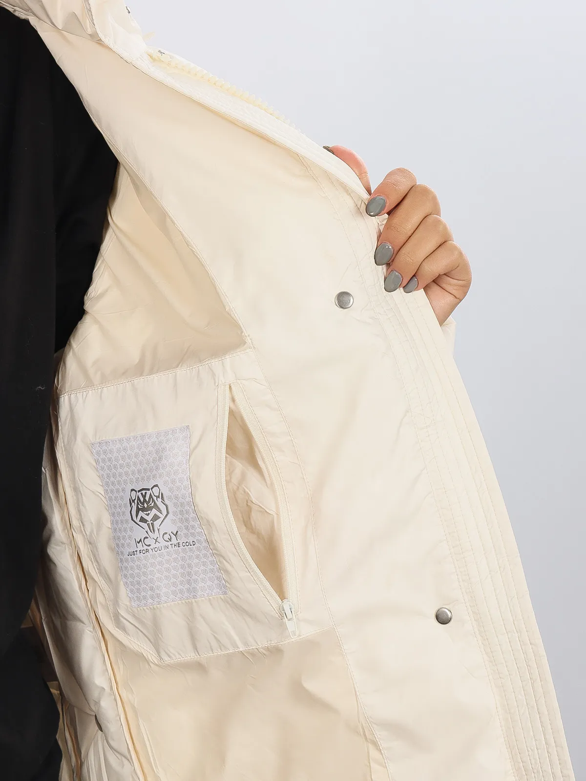 Высокий воротник-стойка защищает шею от холода, а эластичные манжеты плотно облегают запястья, не позволяя холоду проникать внутрь. Несколько боковых карманов удобны для хранения мелочей или согрева рук в холодную погоду.