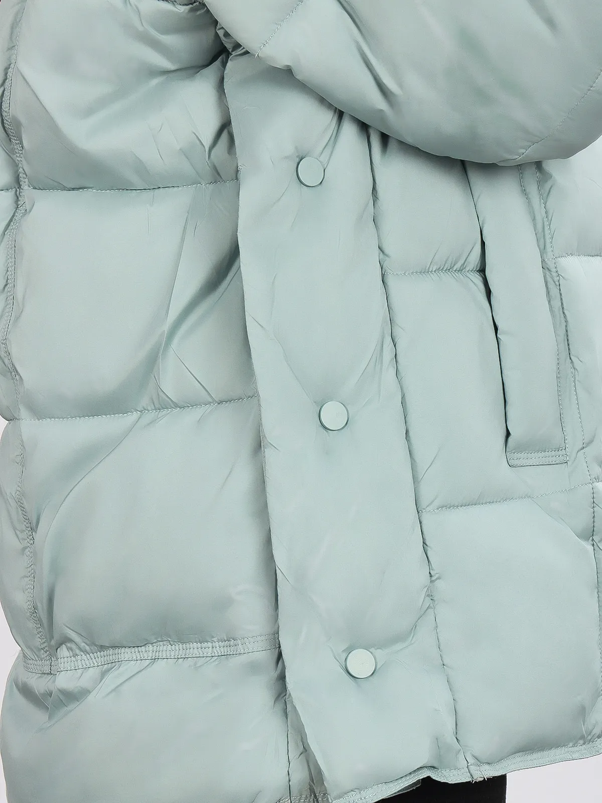 Объемный капюшон защитит от ветра и снега, а благодаря съемной конструкции вы сможете регулировать внешний вид и уровень защиты. Застежка-молния обеспечивает удобство надевания, а ветрозащитная планка на заклепках дополнительно сохраняет тепло.