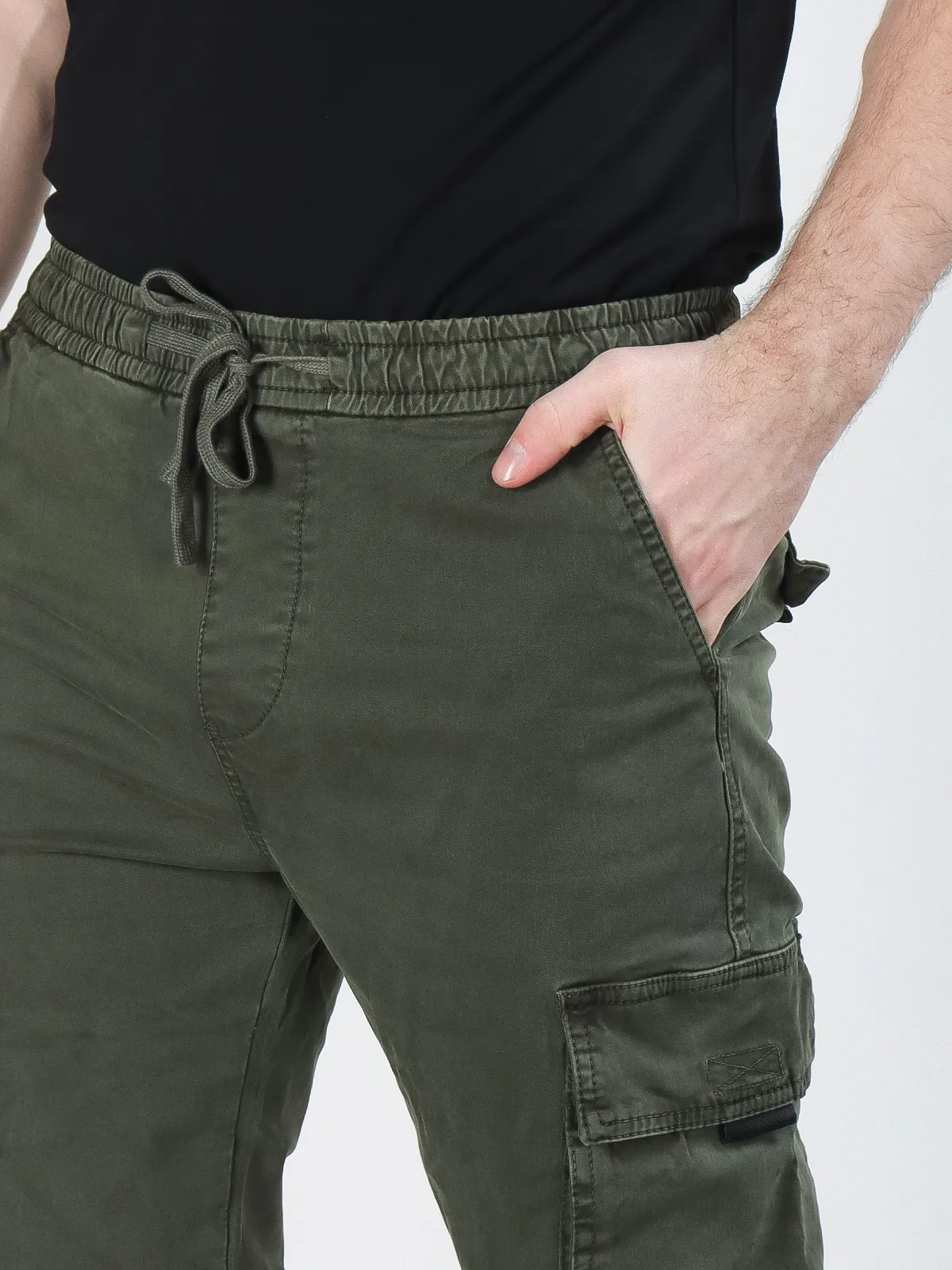 Пояс на резинке с шнурком гарантирует удобную и регулируемую посадку, обеспечивая надежную фиксацию и комфорт при движении.
