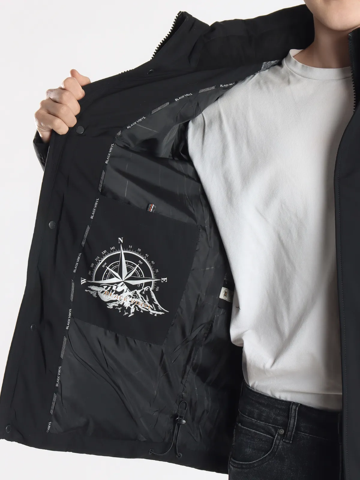 Мужская куртка Black Vinyl — идеальный выбор для комфортного ношения в холодное время года. Эта стильная и функциональная модель обеспечит вам надежную защиту от холода, ветра и дождя. Куртка выполнена из прочного и водоотталкивающего полиэстера, что делает ее отличным решением для повседневного использования.