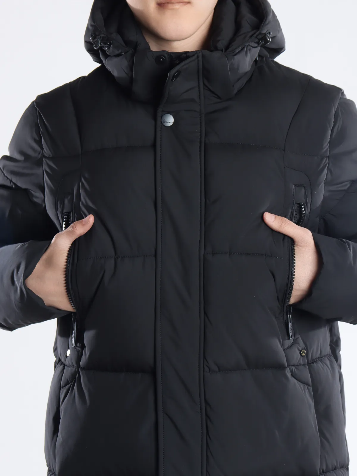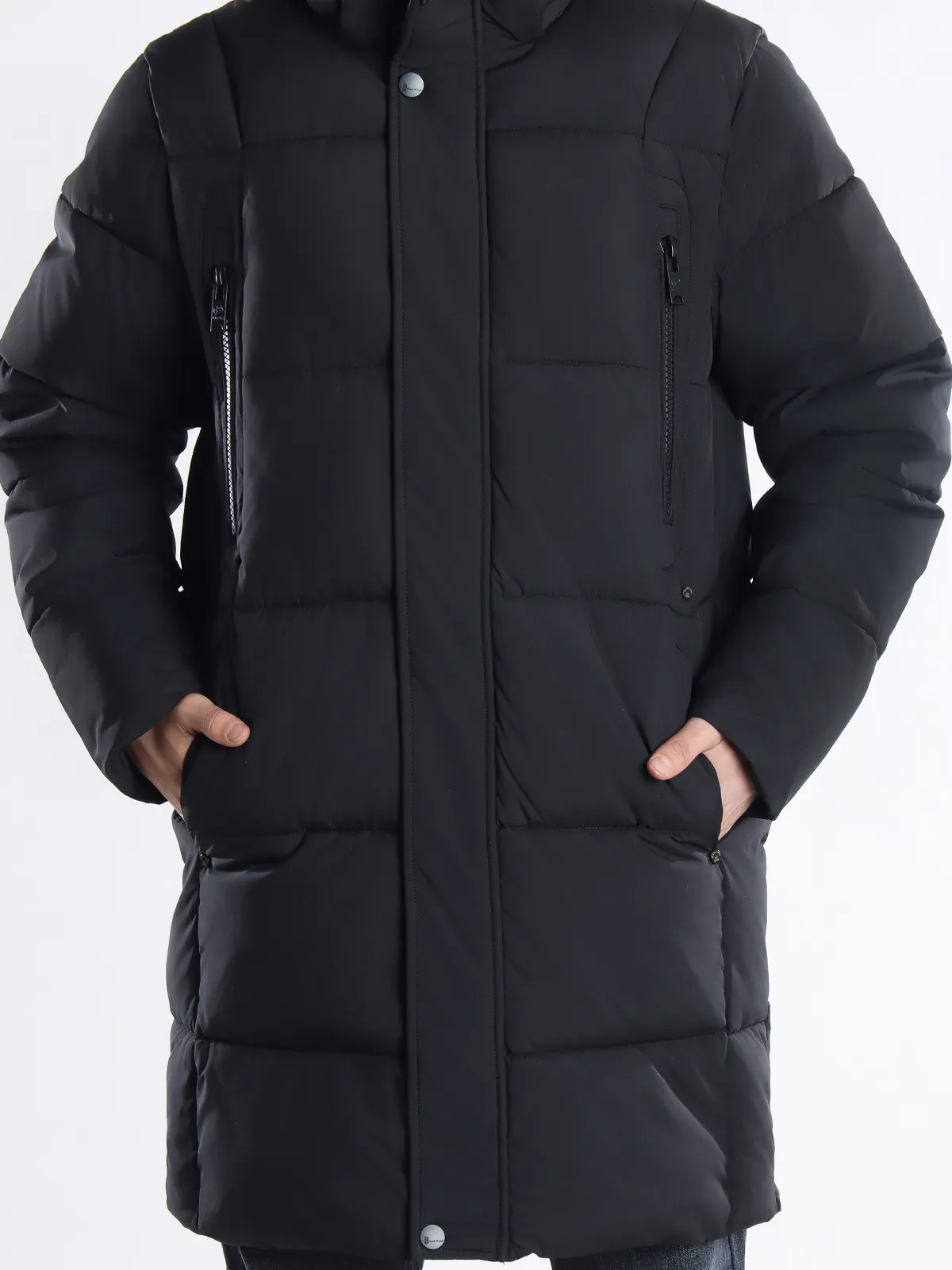 Black Vinyl — это стильная мужская куртка, которая сочетает современный дизайн, практичные элементы и надёжную защиту от непогоды. Отличный выбор для тех, кто ищет мужскую удлинённую куртку на холодную погоду с капюшоном и множеством карманов.