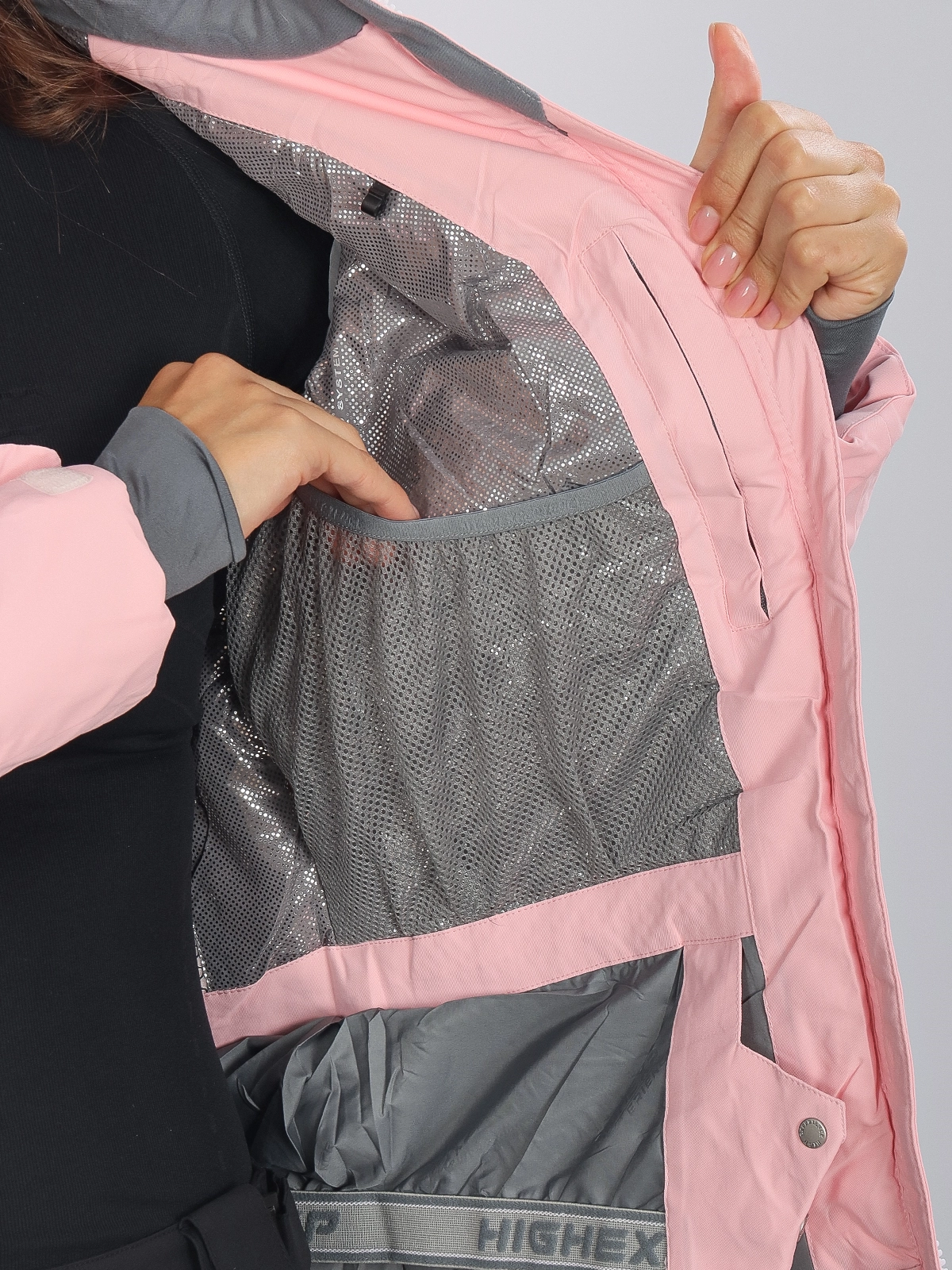 Горнолыжная куртка High Experience RH64038 — стильная женская куртка розового цвета, идеально подходящая для активных зимних видов спорта и отдыха на свежем воздухе.