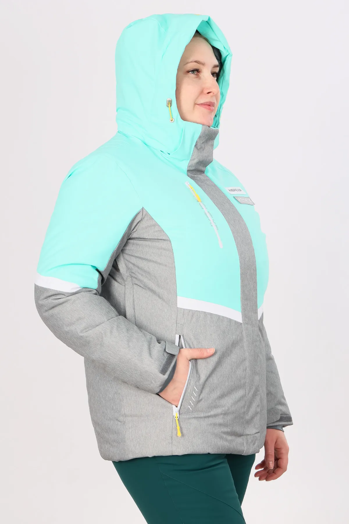 - Регулируемый съемный капюшон, снегозащитная юбка, функциональные карманы