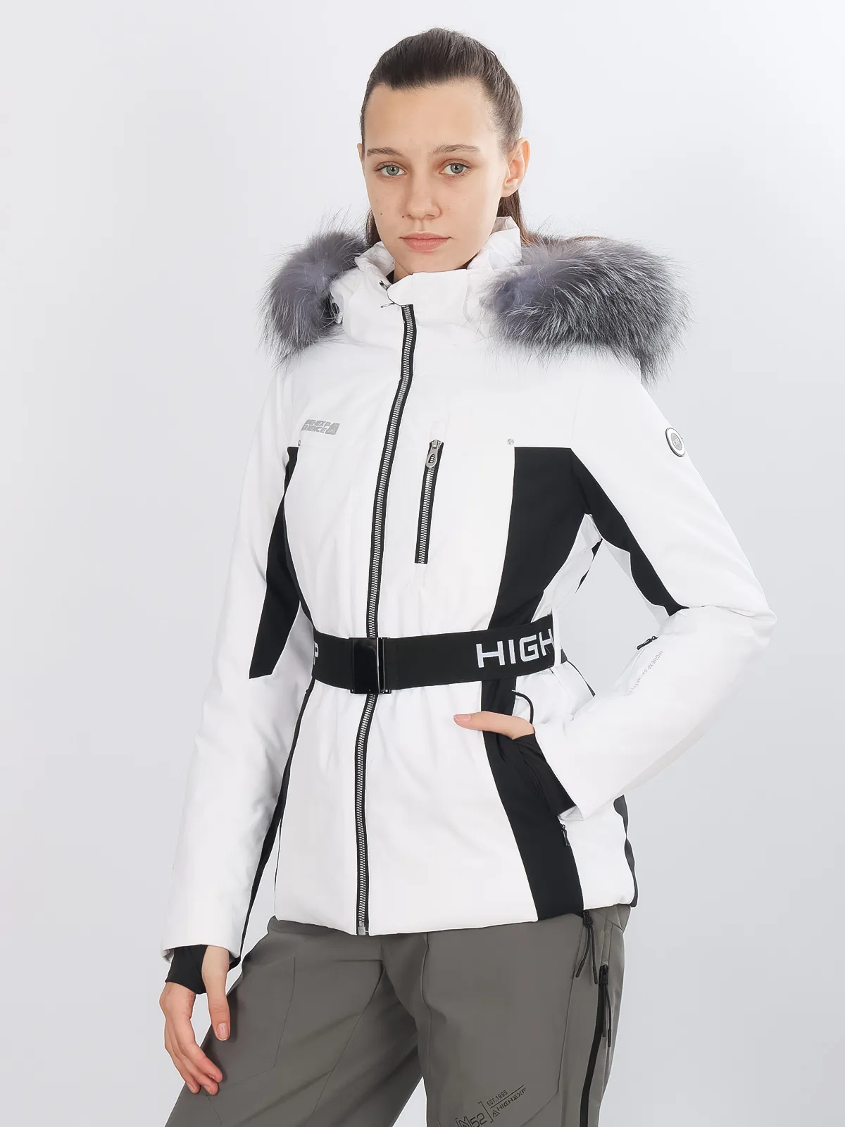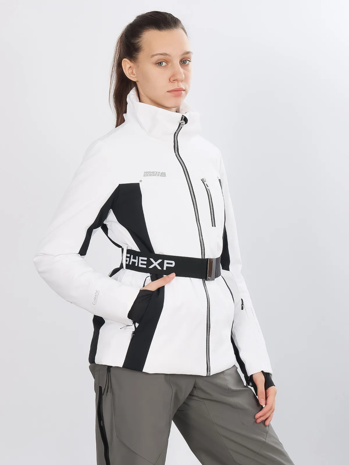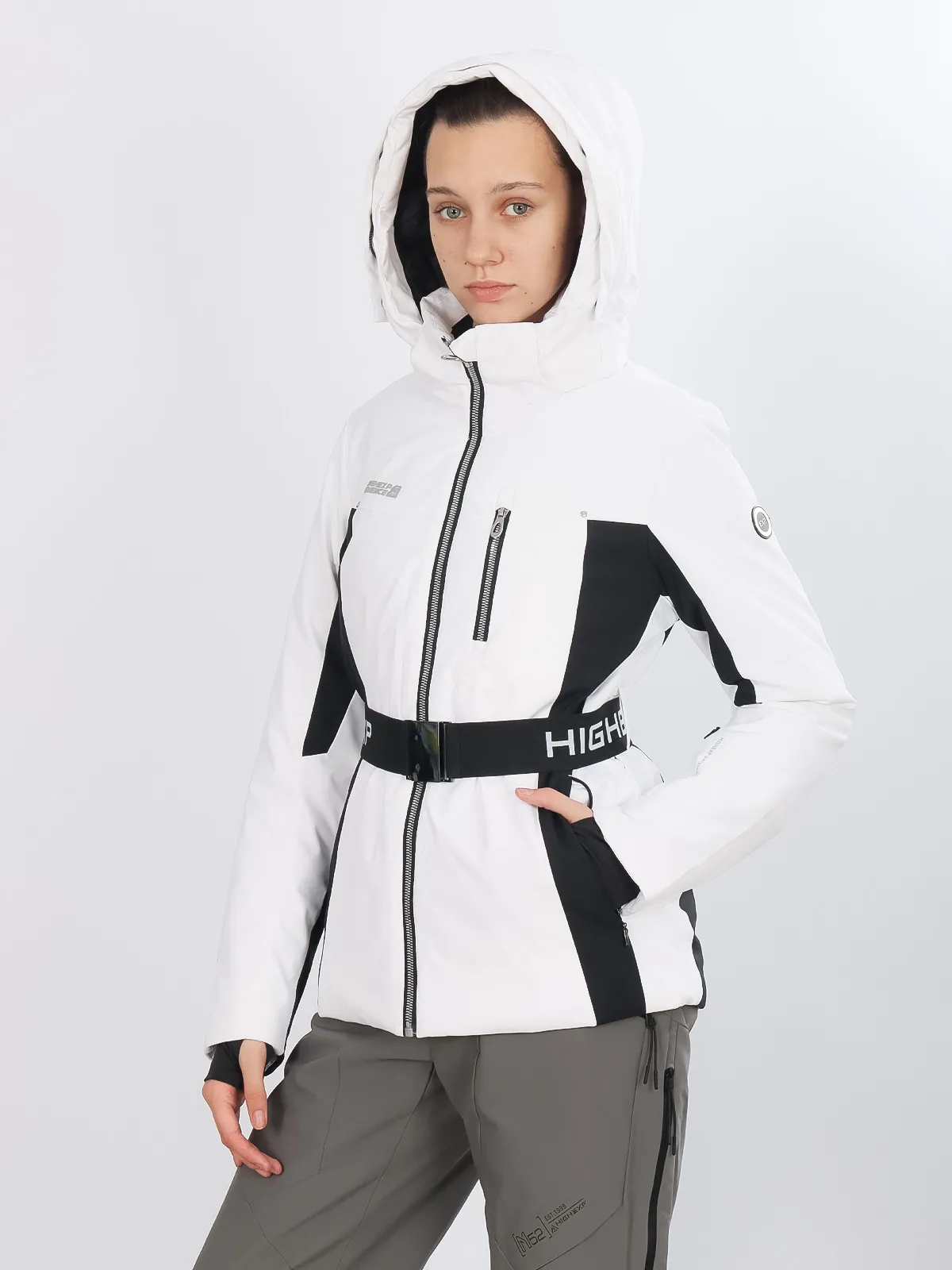 Горнолыжная куртка High Experience RH64073 — стильная белая куртка для женщин, идеально подходящая для активного отдыха, горных лыж, сноуборда или прогулок.