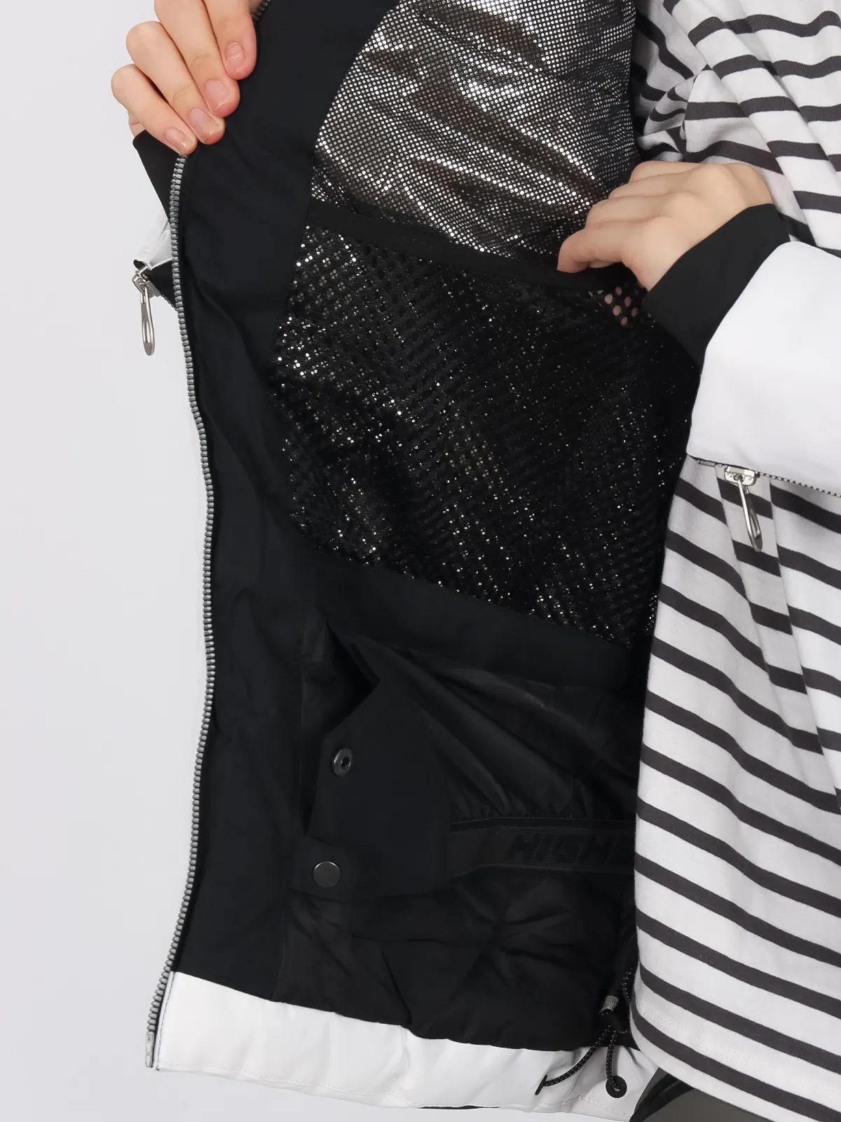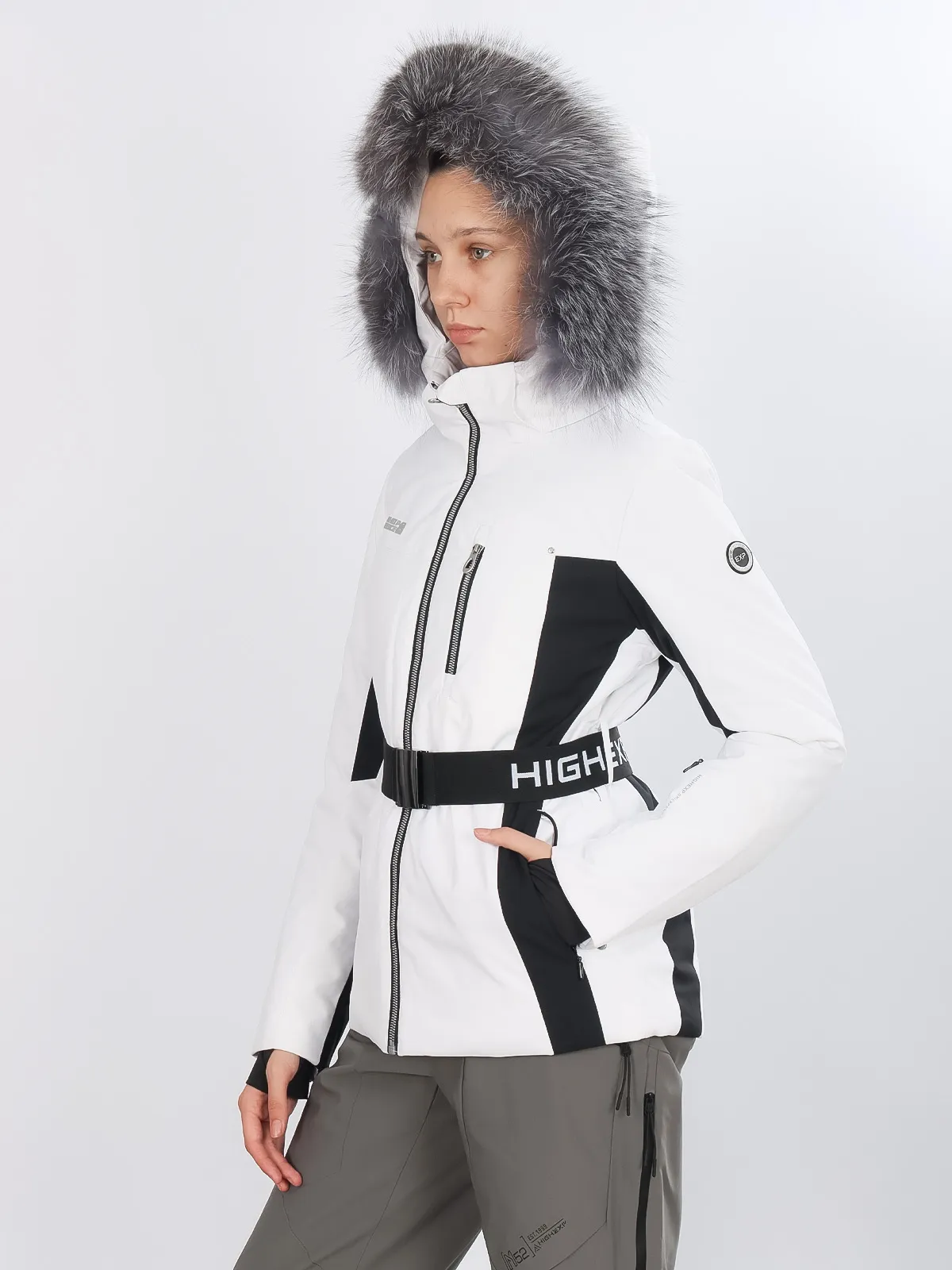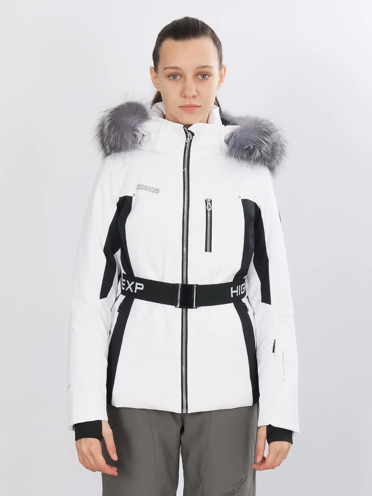 Горнолыжная куртка High Experience RH64073 — стильная белая куртка для женщин, идеально подходящая для активного отдыха, горных лыж, сноуборда или прогулок.
