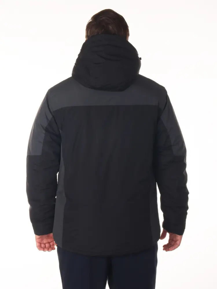 Модель оснащена нагрудным и боковыми карманами на молнии, съемным капюшоном и воротником-стойкой для защиты от холода. Фольгированная вставка на спине повышает теплоизоляцию, а внутренний карман позволяет хранить необходимые мелочи.