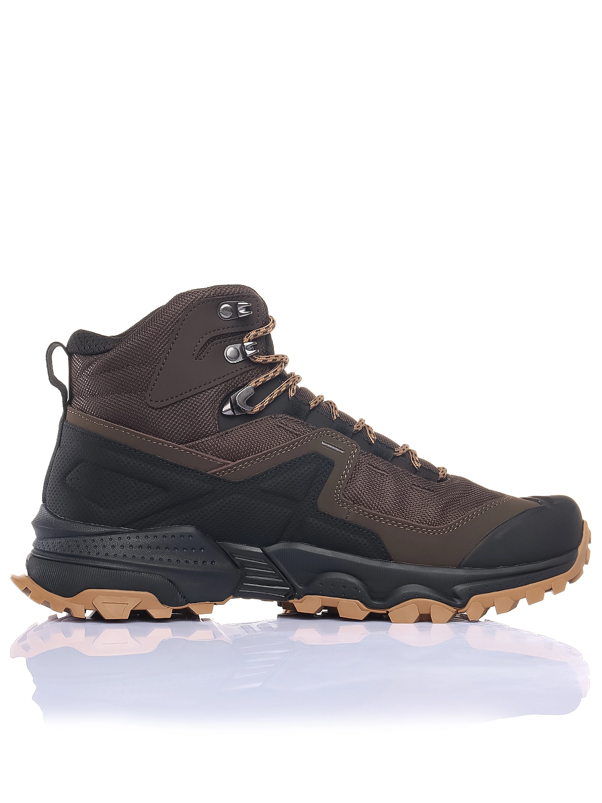 Верх выполнен из технологичного текстиля, натуральной кожи и микрофибры, обеспечивая защиту от влаги и оптимальный баланс вентиляции и прочности. Классическая шнуровка гарантирует надежную посадку, а теплоотражающее покрытие помогает сохранить тепло внутри обуви.