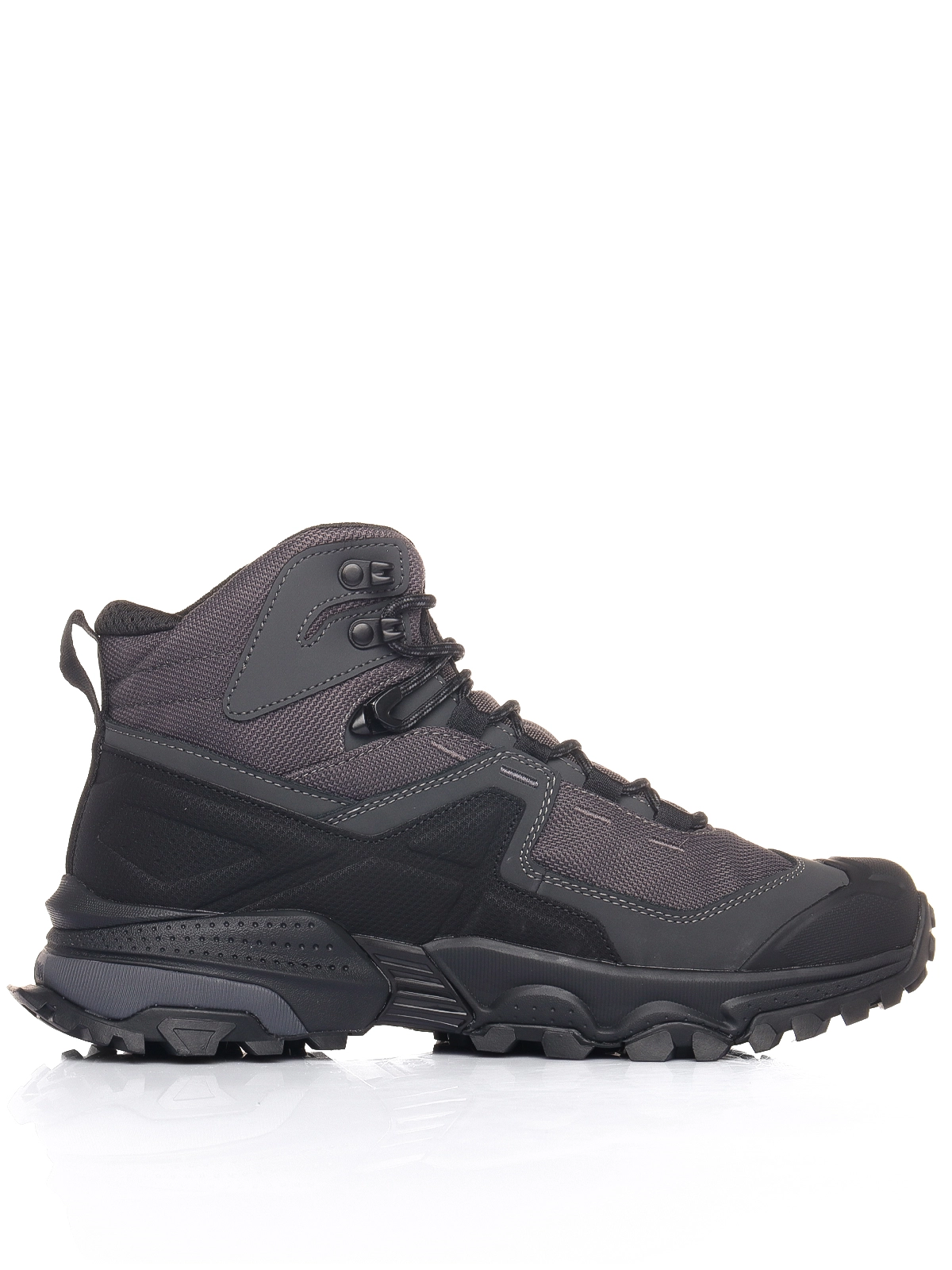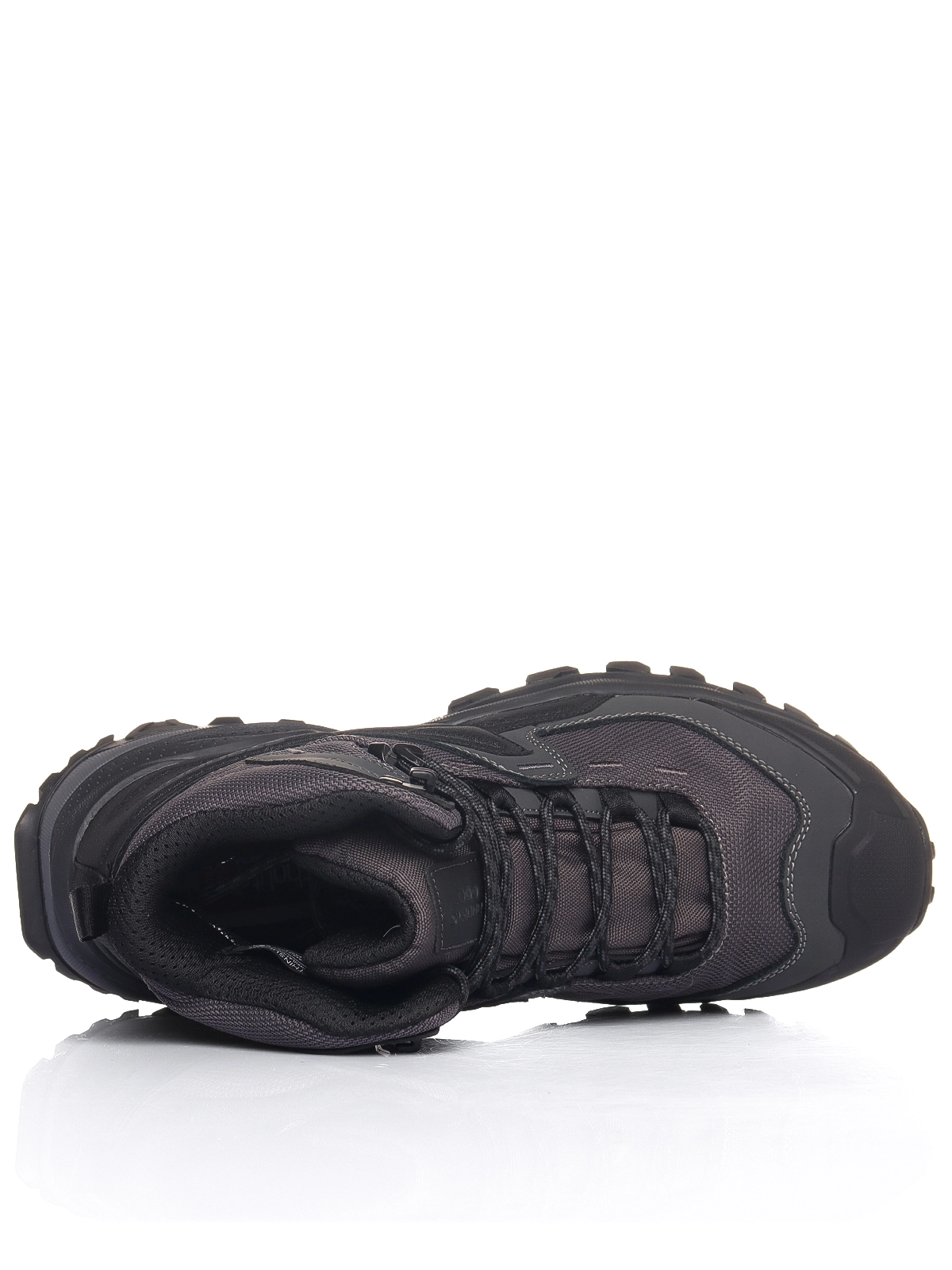 Верх выполнен из технологичного текстиля, натуральной кожи и микрофибры, обеспечивая защиту от влаги и оптимальный баланс вентиляции и прочности. Классическая шнуровка гарантирует надежную посадку, а теплоотражающее покрытие помогает сохранить тепло внутри обуви.