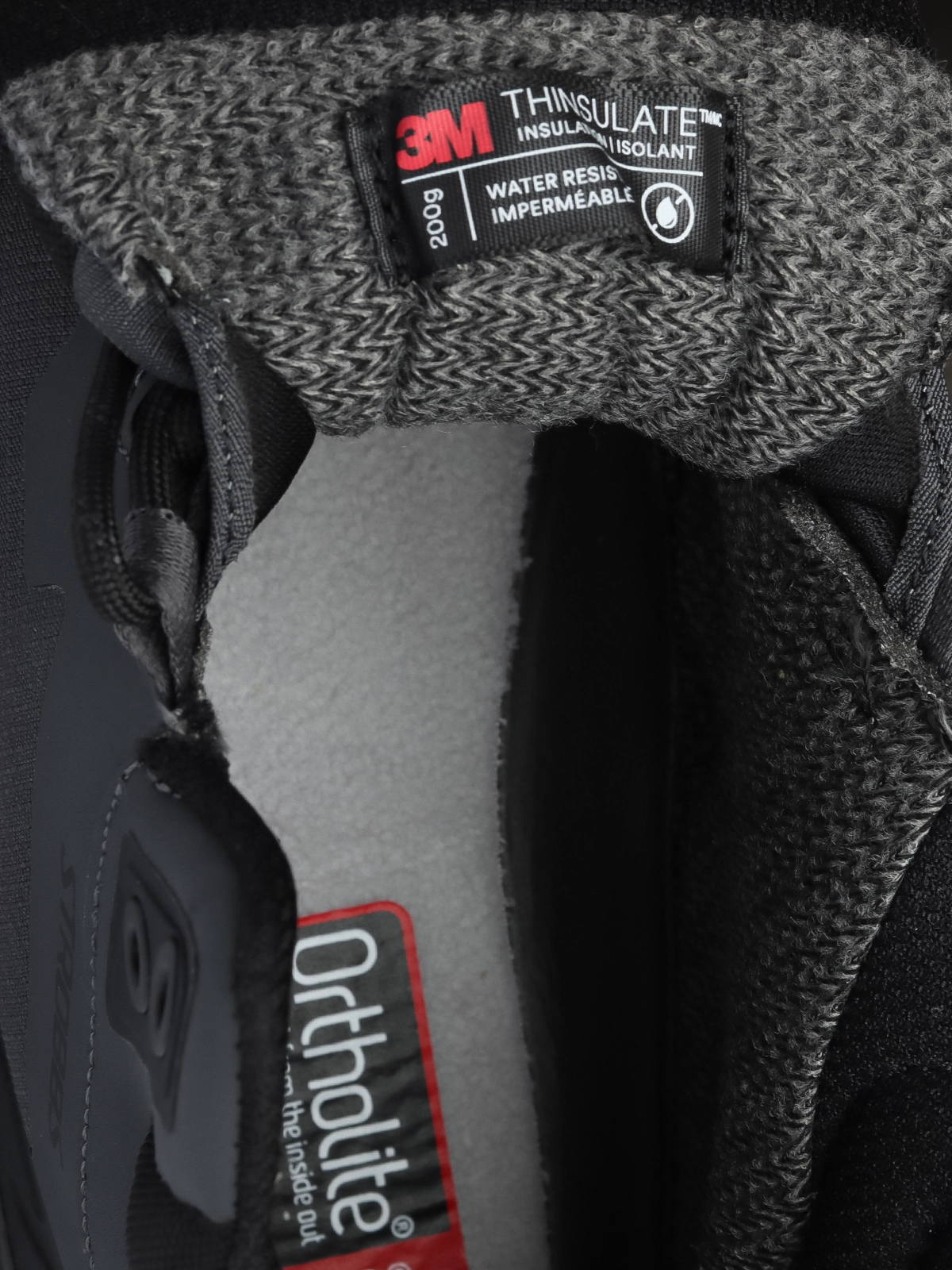 Верх выполнен из технологичного текстиля с водоотталкивающей пропиткой 3M Scotchgard, которая защищает обувь от влаги и снега, сохраняя долговечность.