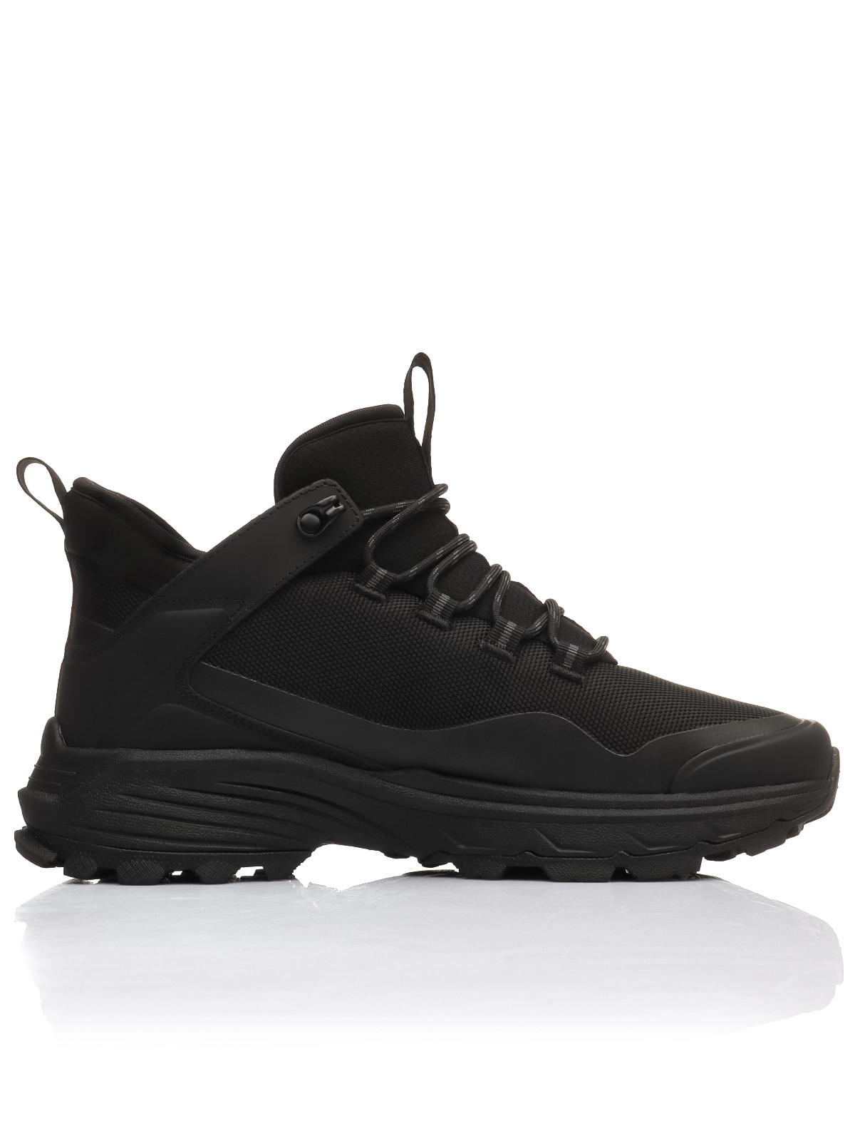 Верх выполнен из технологичного текстиля и микрофибры с защитой от влаги и оптимальной вентиляцией. Обработка 3M Scotchgard Protector защищает обувь от воды и снега.