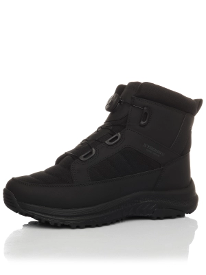 Верх выполнен из прочного текстиля и микрофибры с добавлением искусственной шерсти, что обеспечивает тепло, гибкость и долговечность. Модель защищена от влаги и легко очищается от загрязнений.