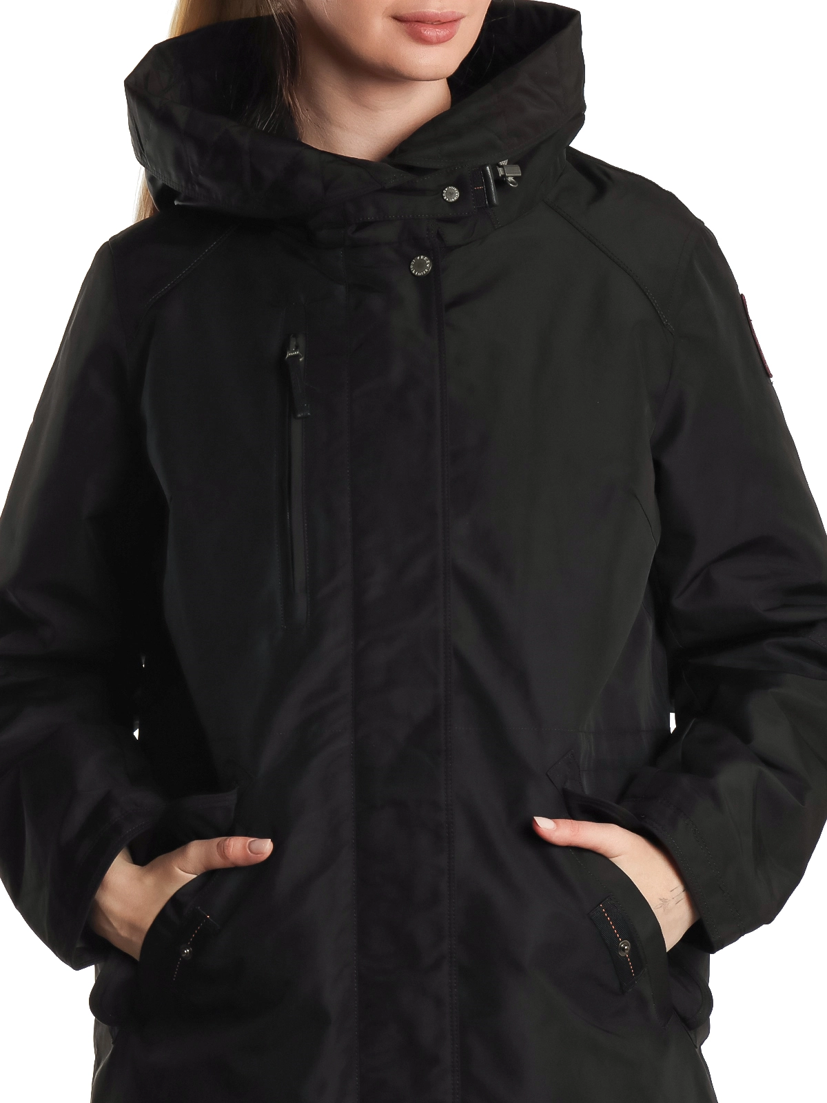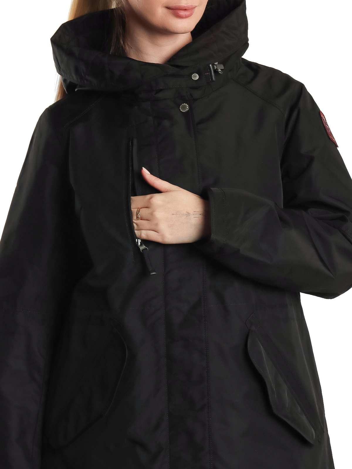 • Имеет несъемный регулируемый капюшон для удобной адаптации к погодным условиям.