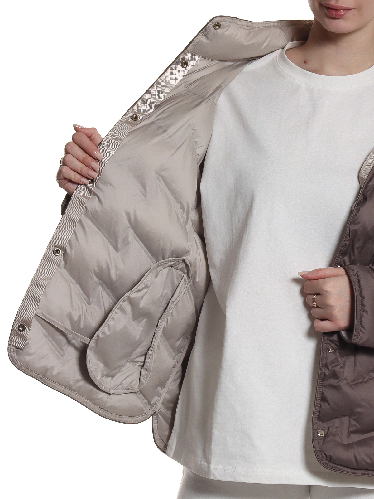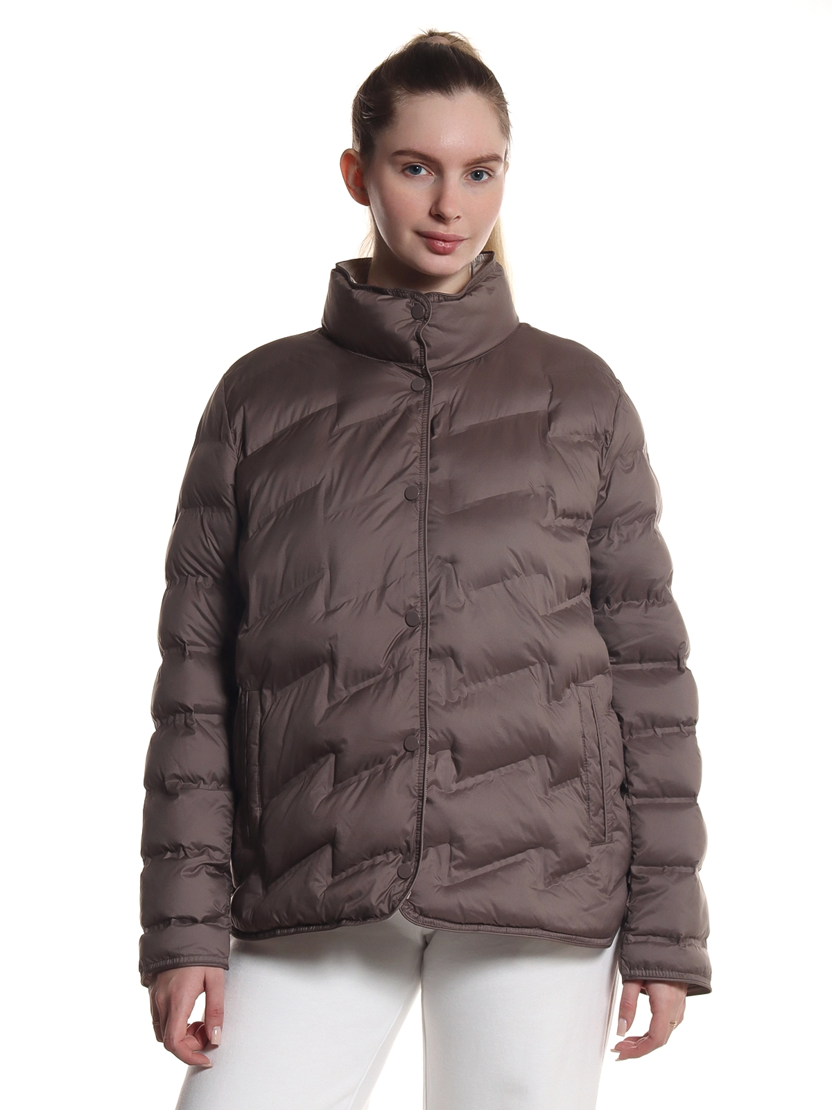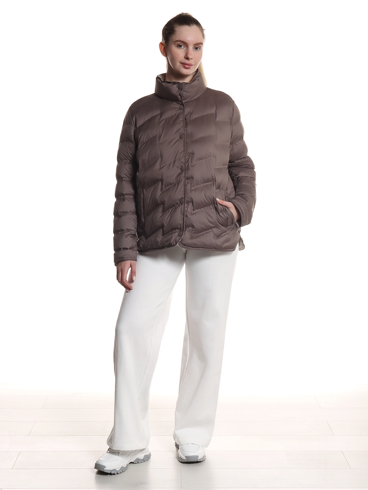 Особенности модели включают воротник-стойку, который защищает шею от холода, и боковые карманы, которые обеспечивают удобное хранение мелочей и добавляют дополнительный стиль. Куртка застегивается на кнопки, что придает ей современный и лаконичный вид.