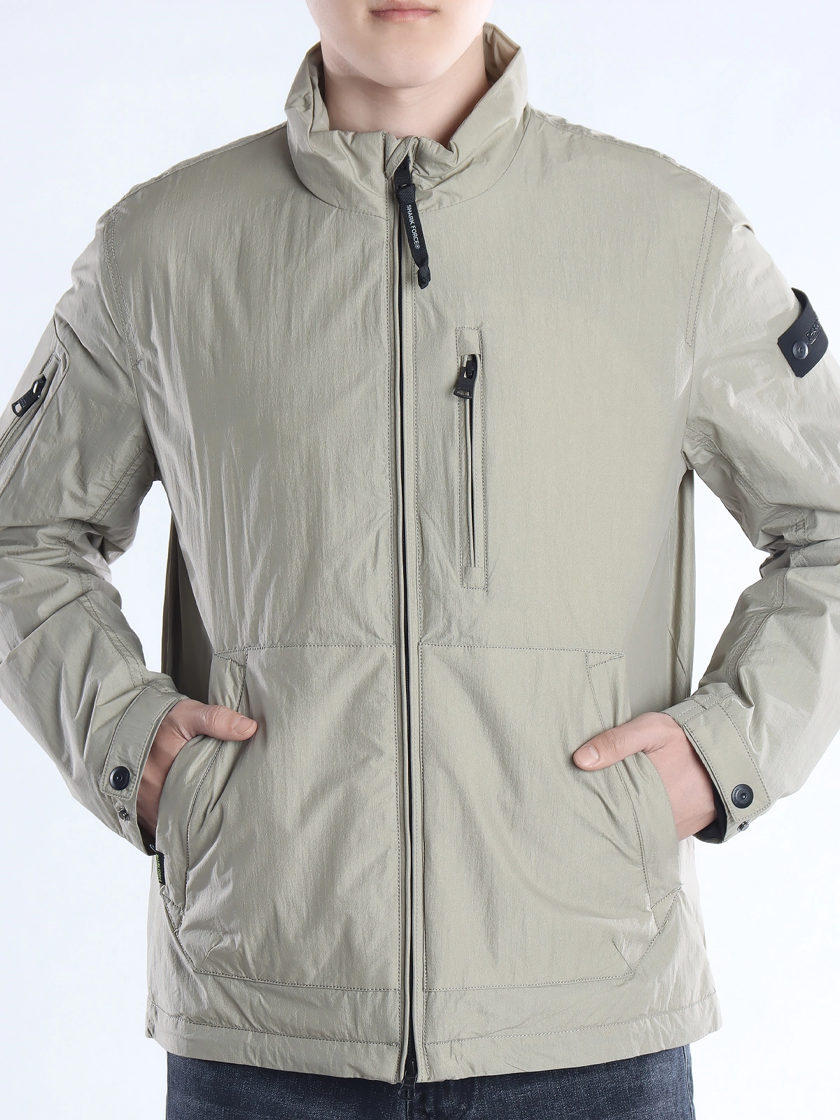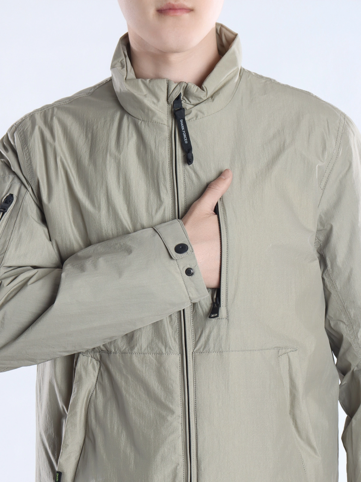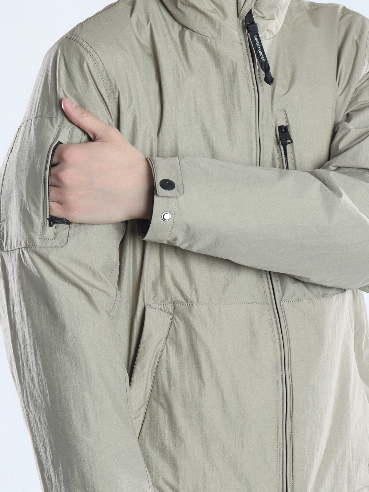Особенность дизайна куртки — это воротник стойка, который дополнительно защищает шею от холода, обеспечивая комфорт при сильных ветрах. Для удобства в повседневном использовании куртка оснащена несколькими карманами: боковые карманы для хранения мелочей, карман на молнии на рукаве для аксессуаров и документов, а также нагрудный карман на молнии для ценностей, которые нужно держать под рукой.
