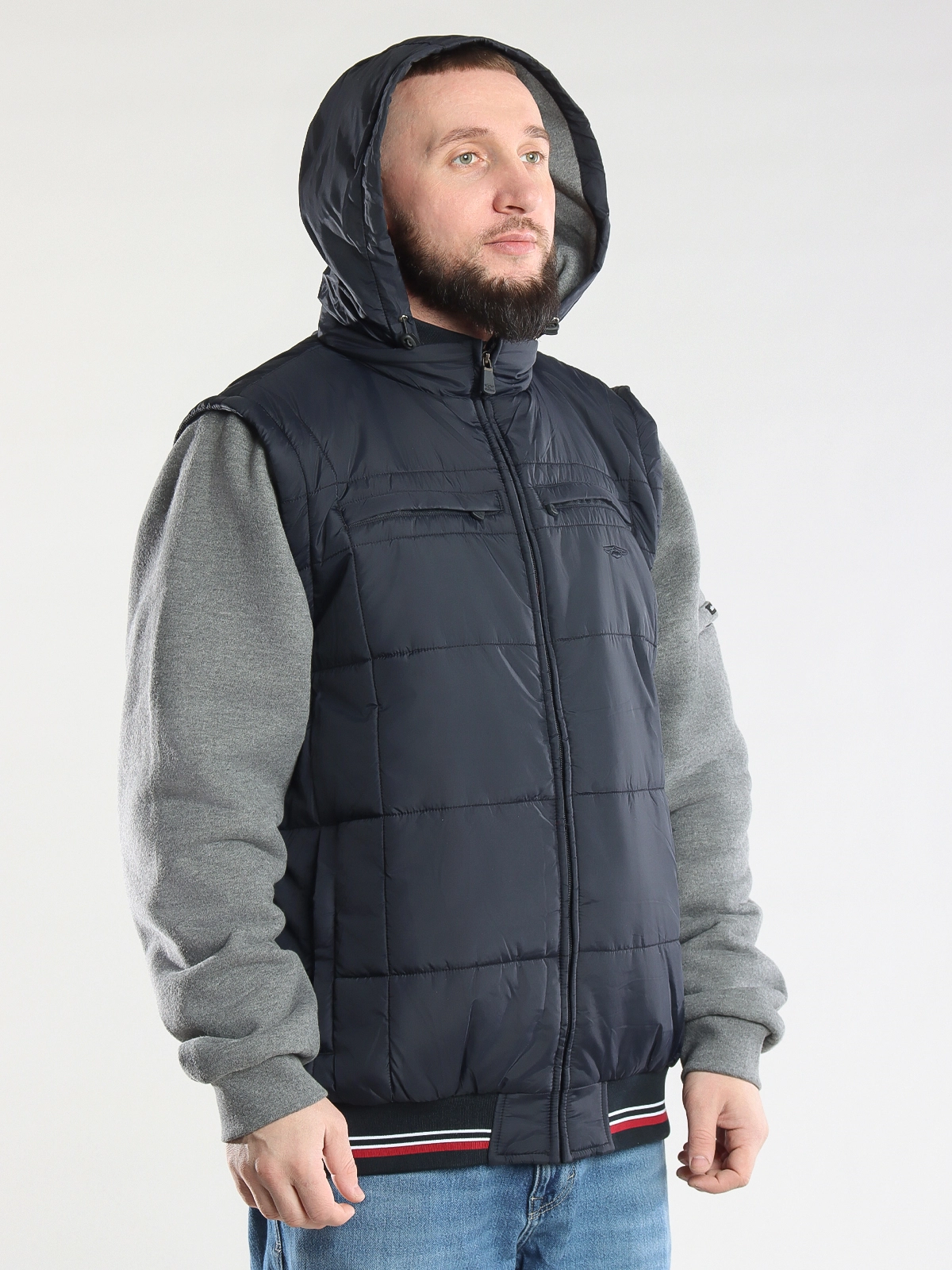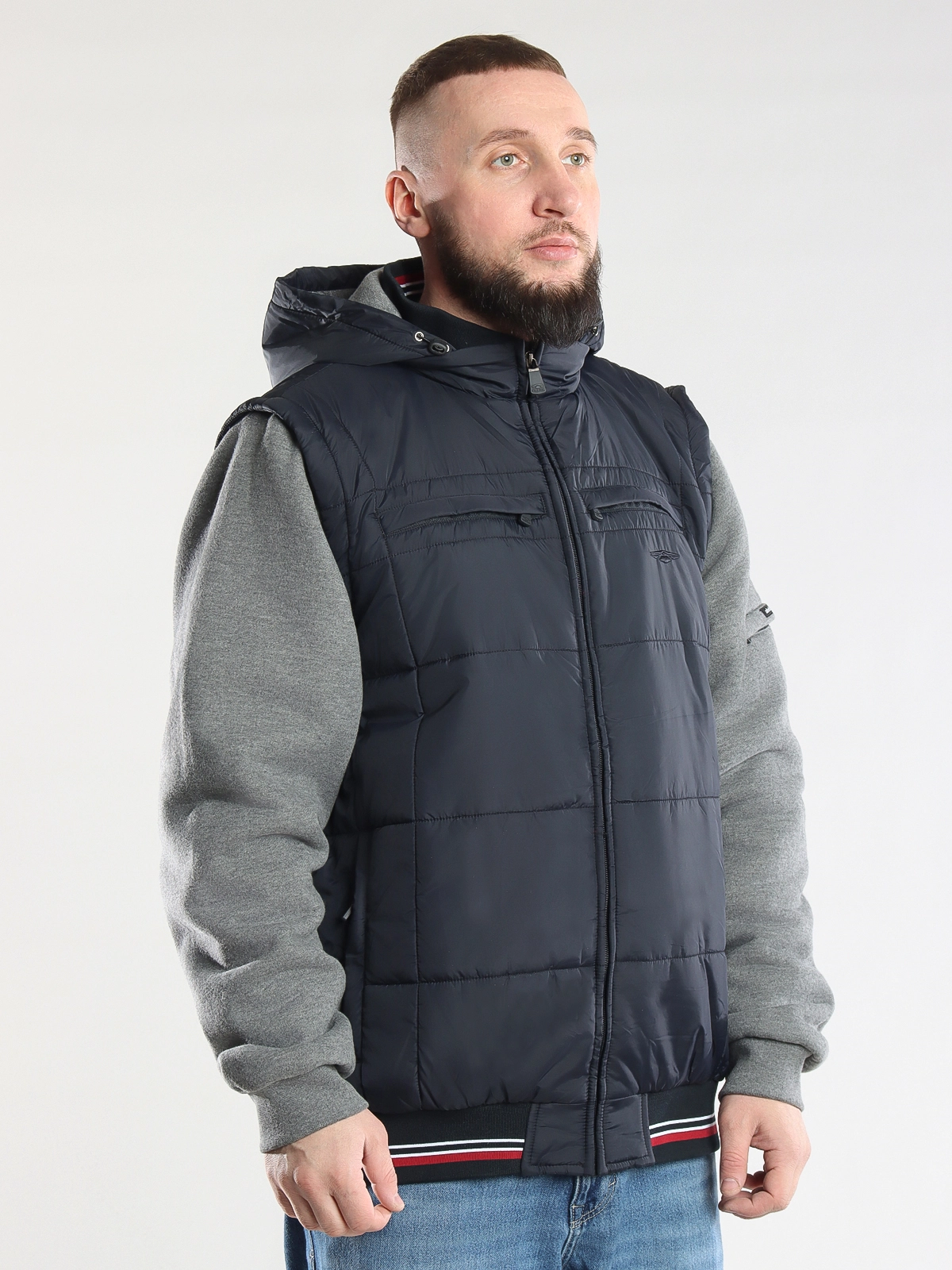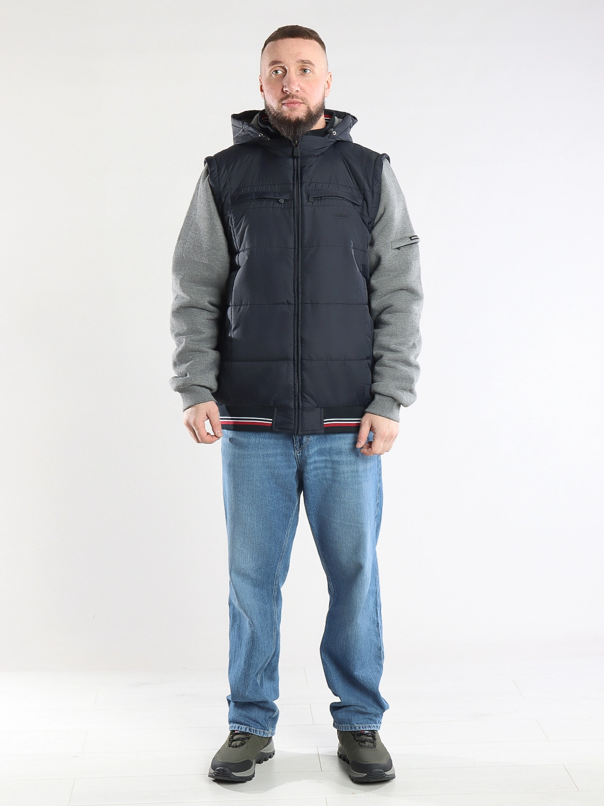 - Отстегивающиеся рукава: куртка легко трансформируется в жилет для удобства в любое время года.