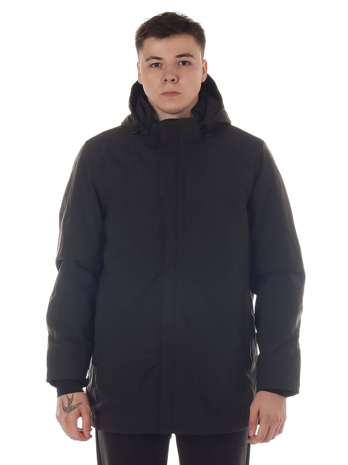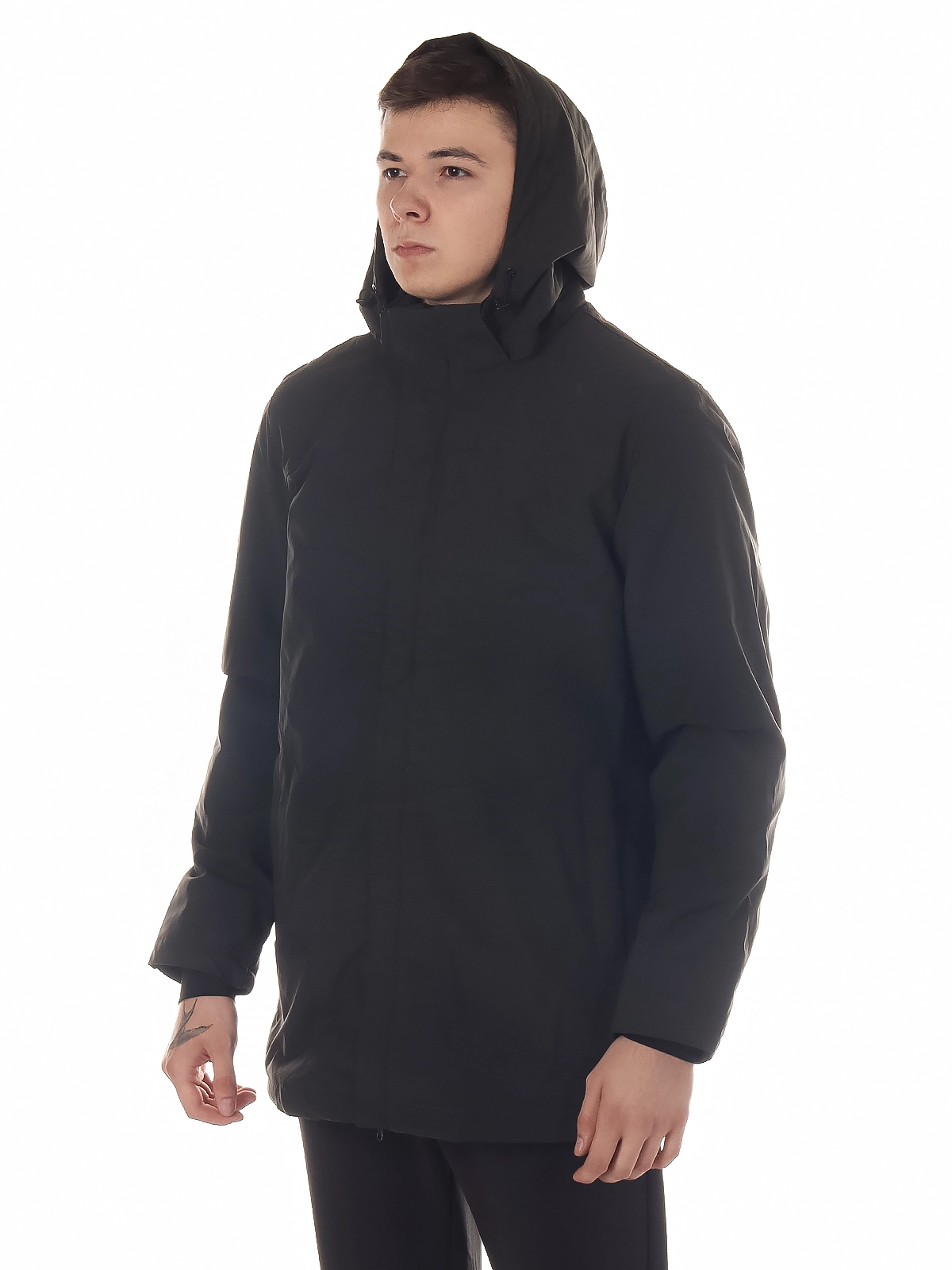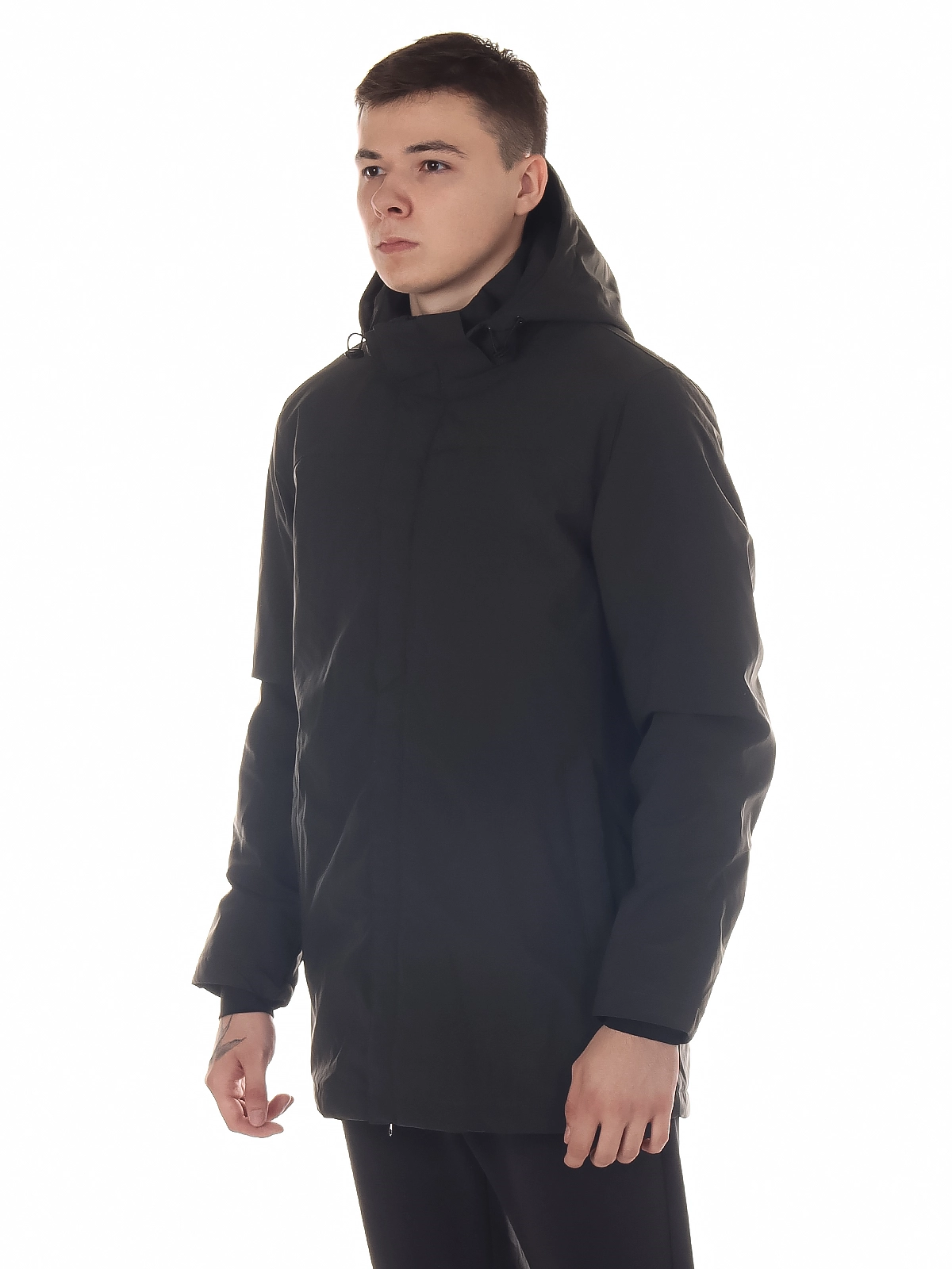 Модель выполнена из прочного полиэстера, который отличается износостойкостью и лёгкостью в уходе. Съёмный капюшон с регулировкой позволяет адаптировать посадку под погодные условия, эффективно защищая от ветра и осадков. Ветрозащитная планка дополнительно препятствует проникновению холодного воздуха внутрь, повышая защиту от непогоды.