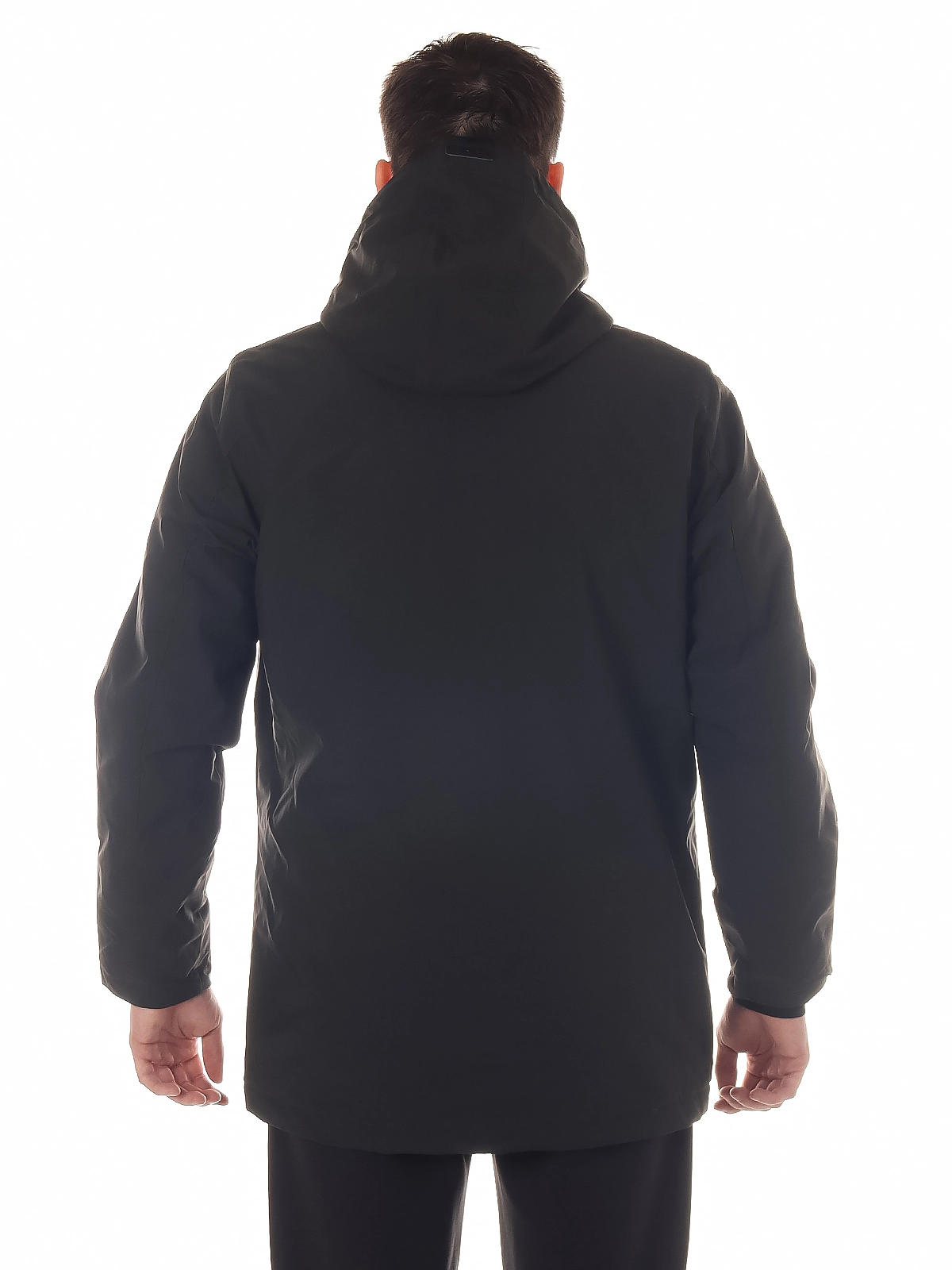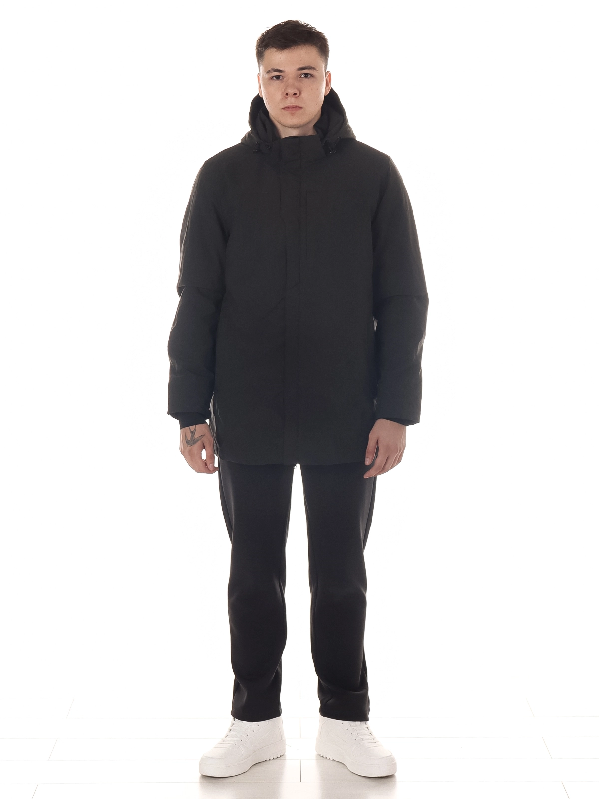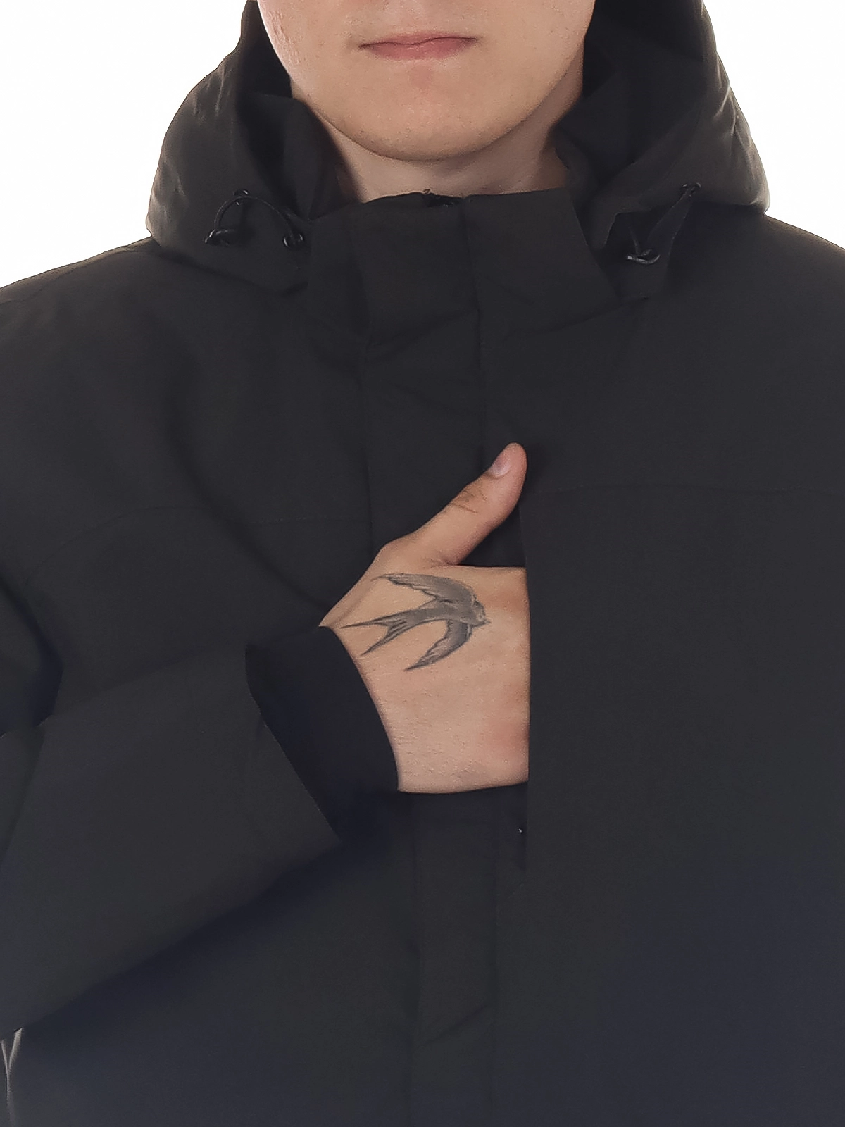 Модель выполнена из прочного полиэстера, который отличается износостойкостью и лёгкостью в уходе. Съёмный капюшон с регулировкой позволяет адаптировать посадку под погодные условия, эффективно защищая от ветра и осадков. Ветрозащитная планка дополнительно препятствует проникновению холодного воздуха внутрь, повышая защиту от непогоды.