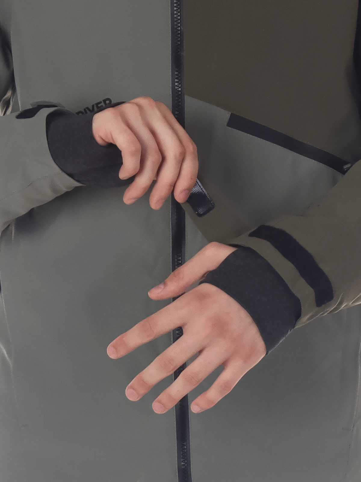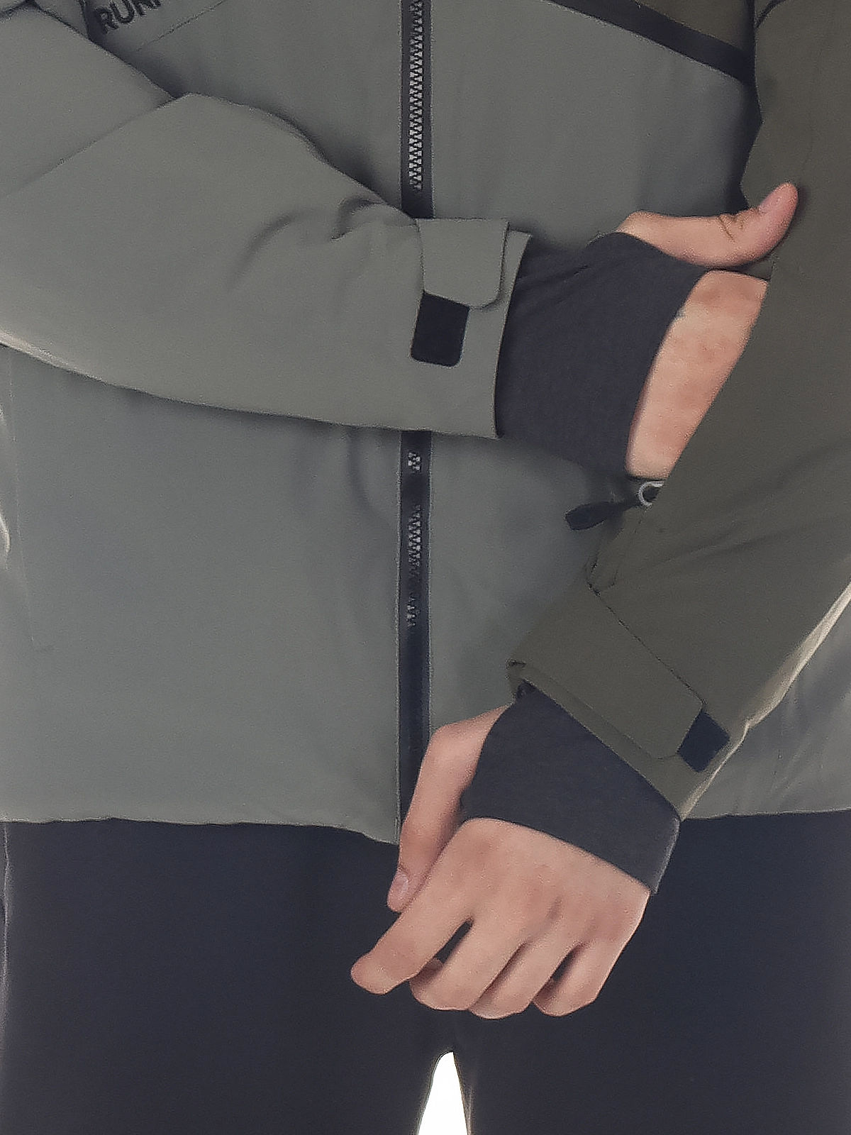 - Рукава: манжеты через палец и манжеты на липучке обеспечивают плотное прилегание и защиту от снега.
