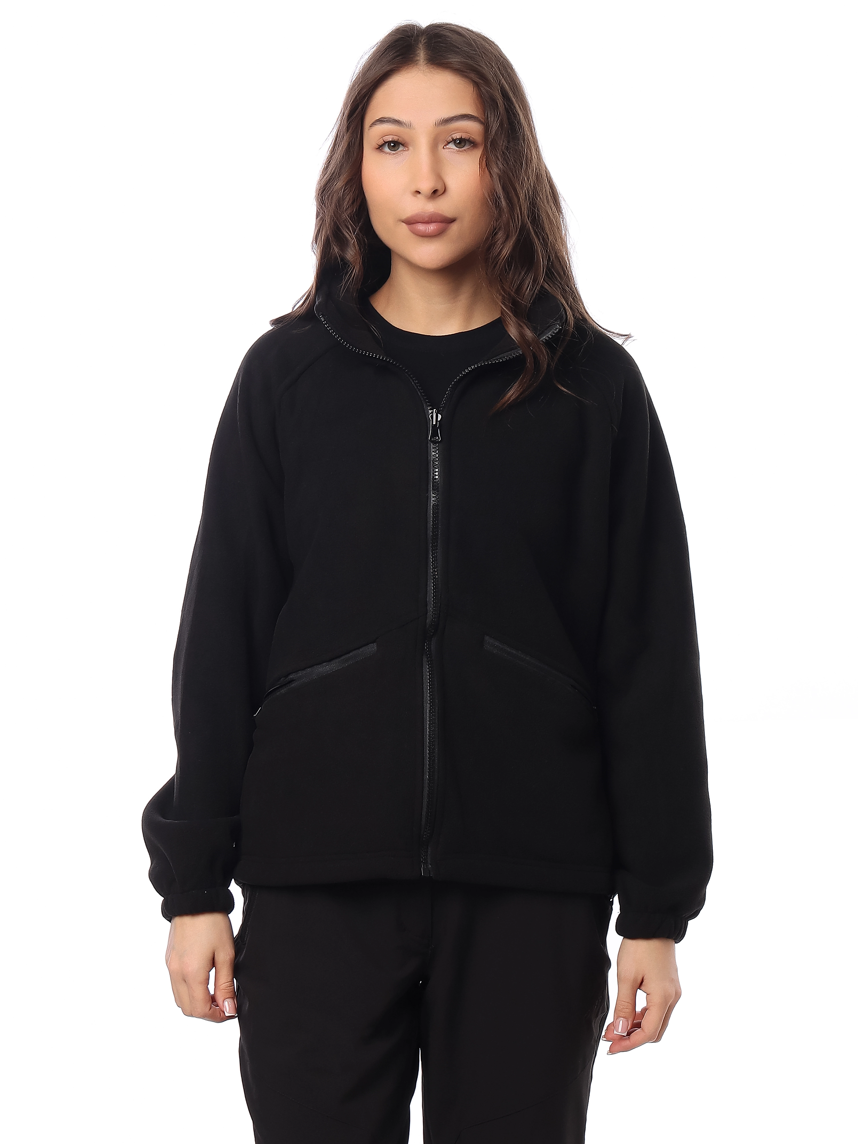 - Флисовая толстовка: мягкая и тёплая, с боковыми карманами на молнии, комфортна для носки как отдельно, так и в комплекте с ветровкой.