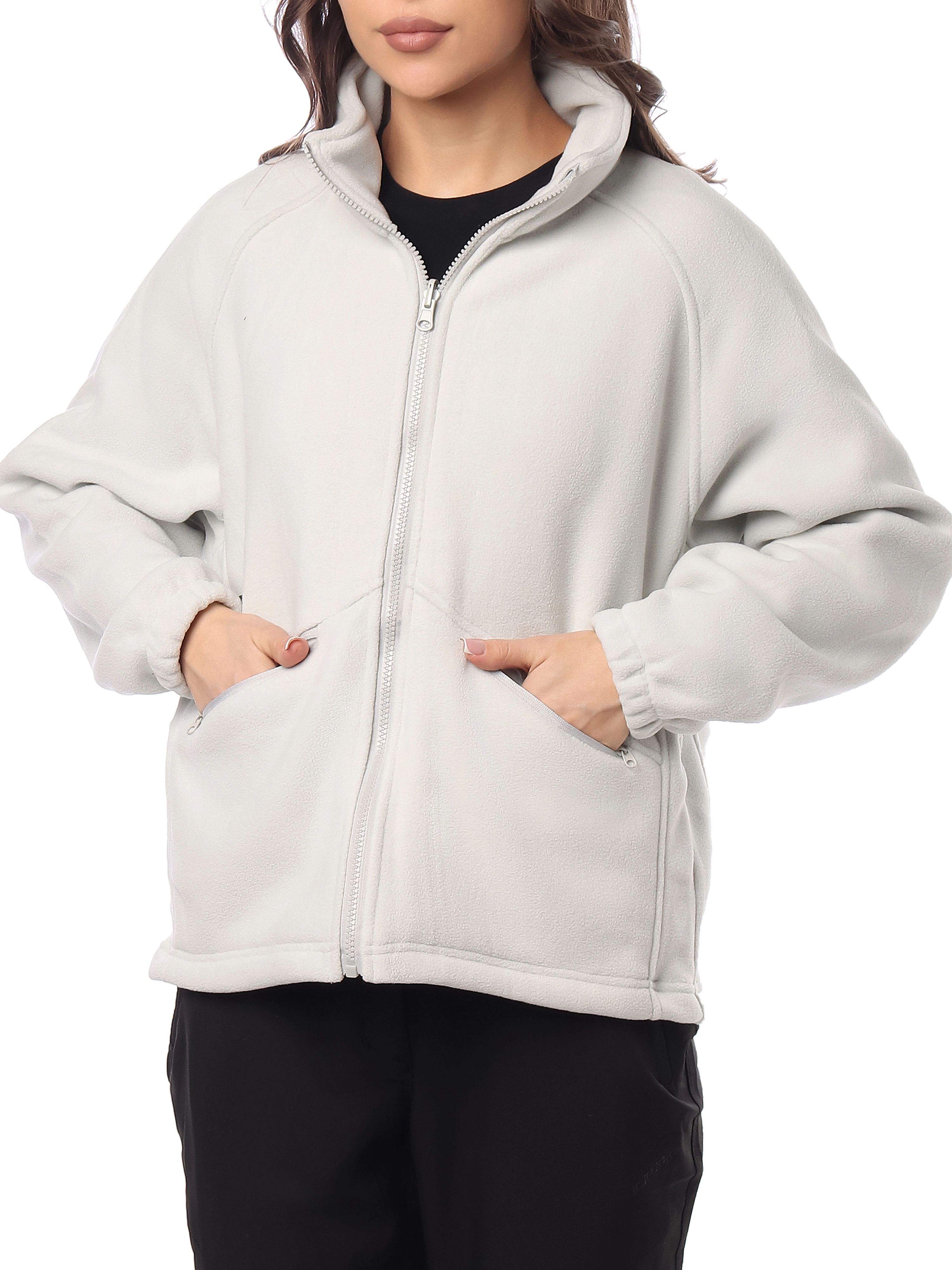 • Флисовая толстовка: мягкая и тёплая, с боковыми карманами на молнии, комфортна для носки как отдельно, так и в комплекте с ветровкой.