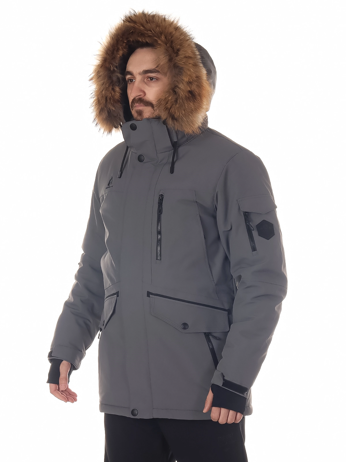 - Функциональные карманы: боковые карманы на молнии, нагрудный карман и карман на рукаве позволяют удобно разместить все необходимые мелочи.