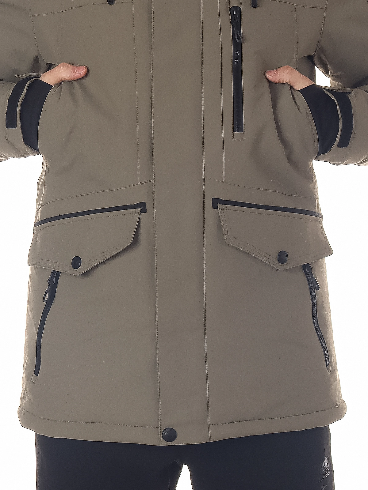 - Функциональные карманы: боковые карманы на молнии, нагрудный карман и карман на рукаве позволяют удобно разместить все необходимые мелочи.