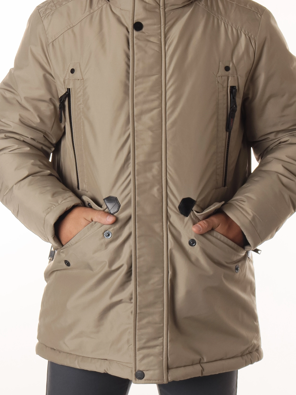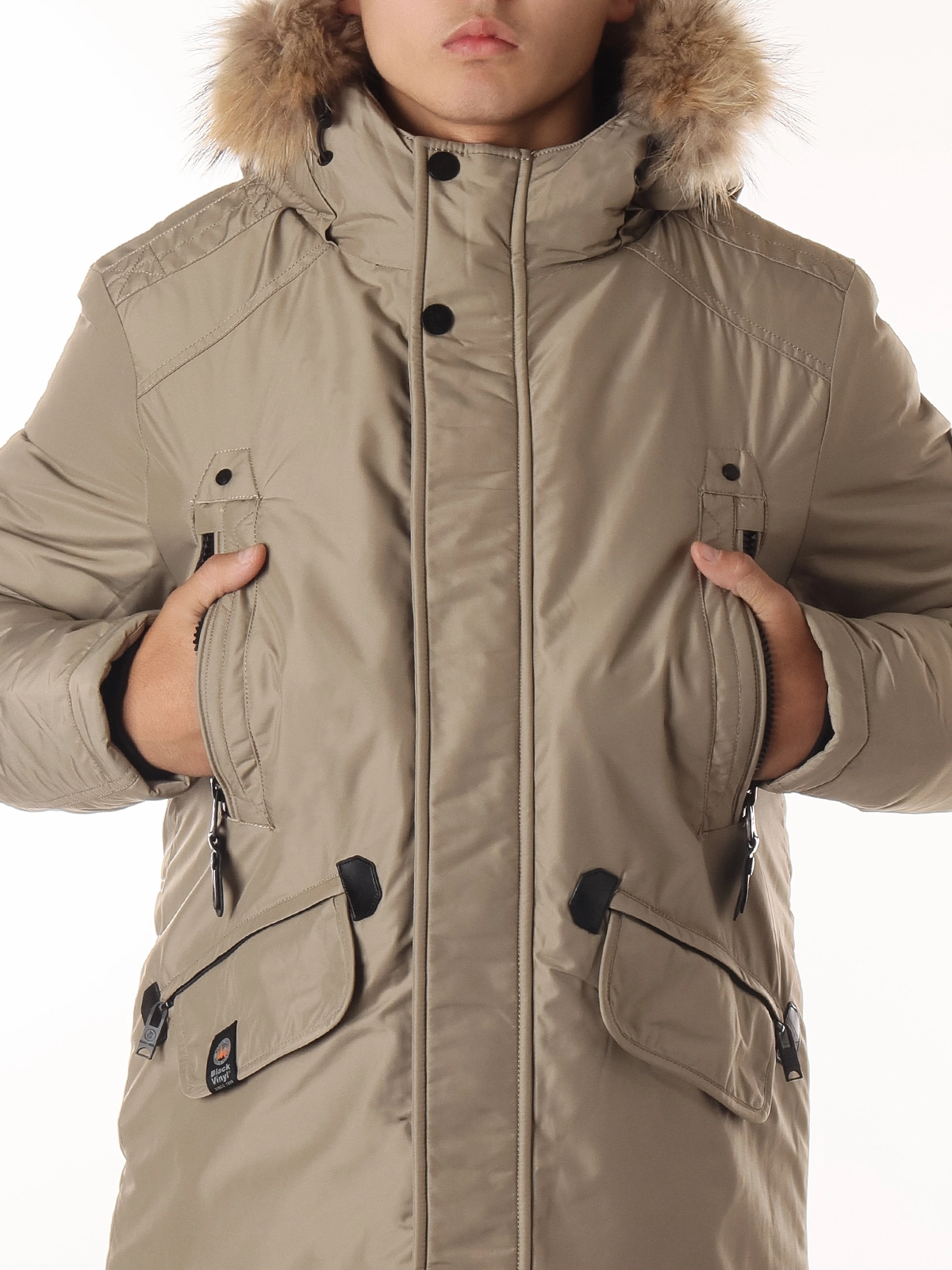 - Капюшон: несъёмный с регулируемой меховой опушкой