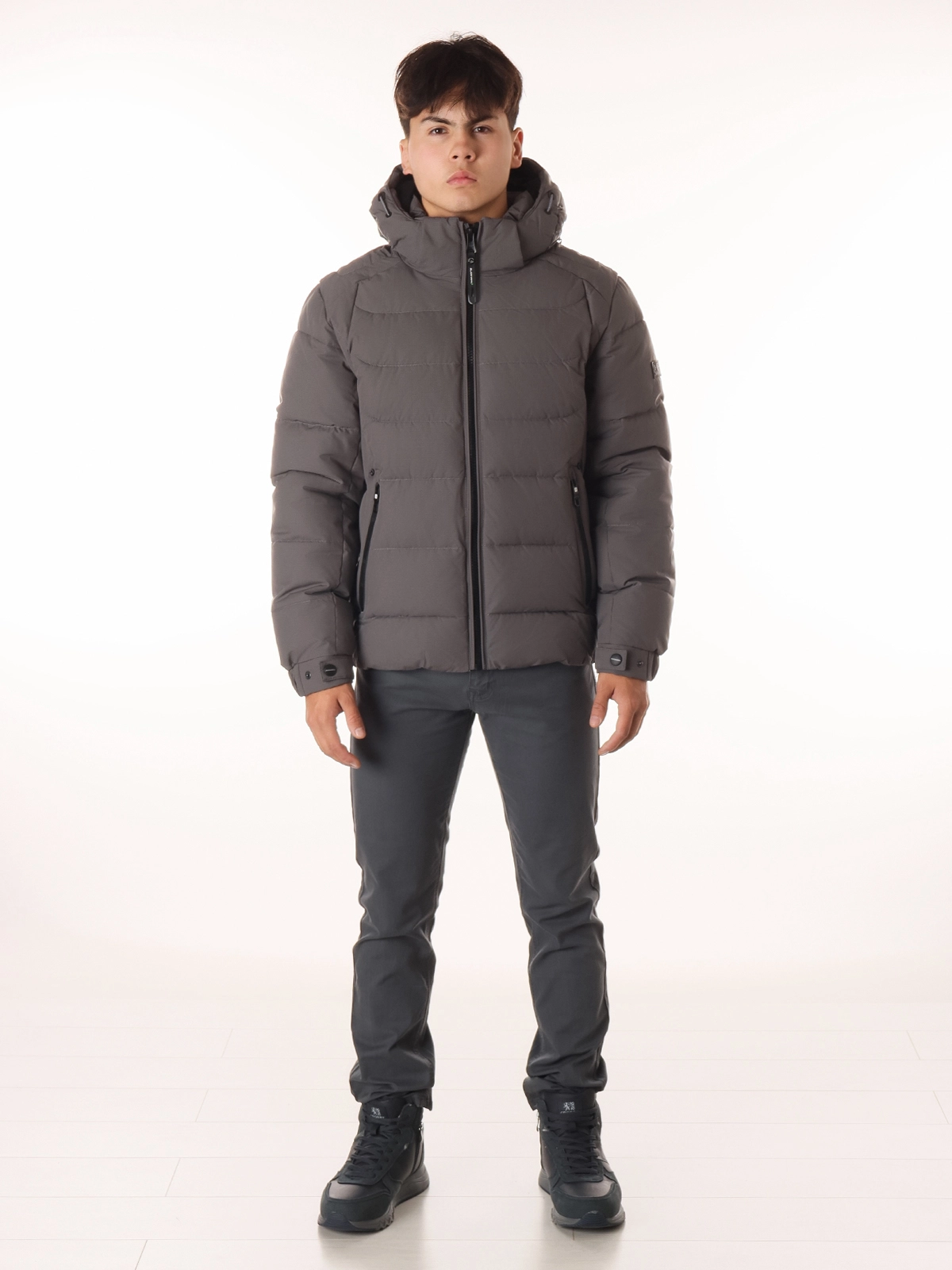 Съёмный капюшон и воротник-стойка добавляют универсальности и защищают от непогоды.