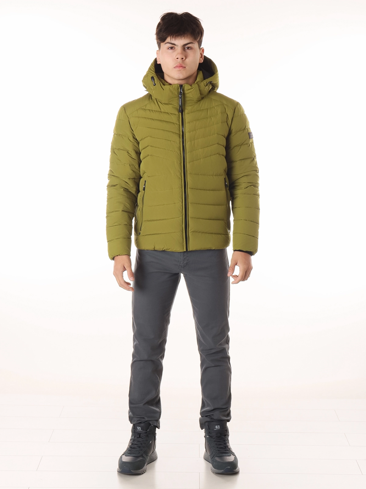 Съемный капюшон с регулировкой и воротник-стойка надежно защищают от холода и непогоды, позволяя адаптировать куртку под разные условия.