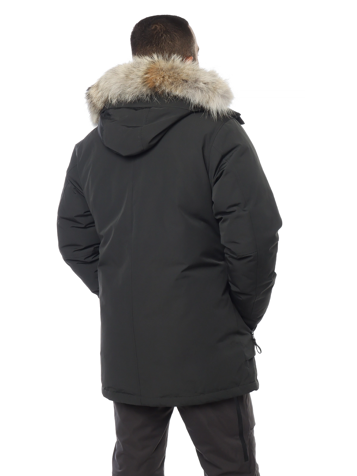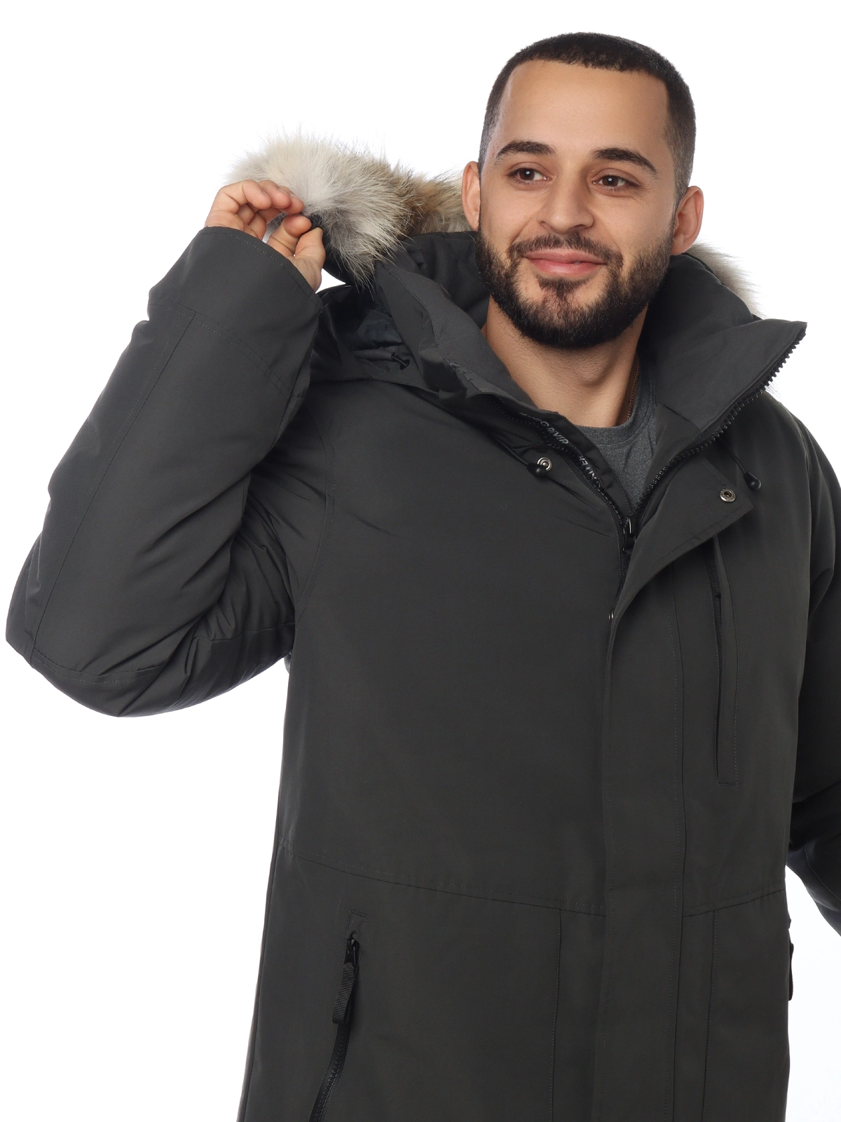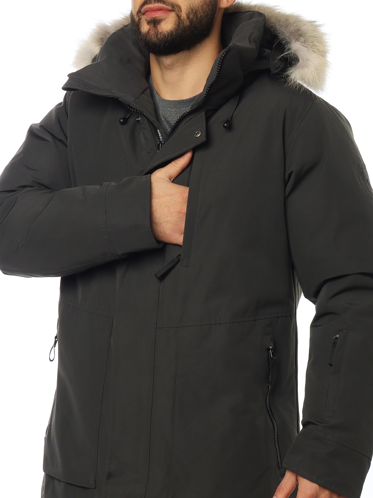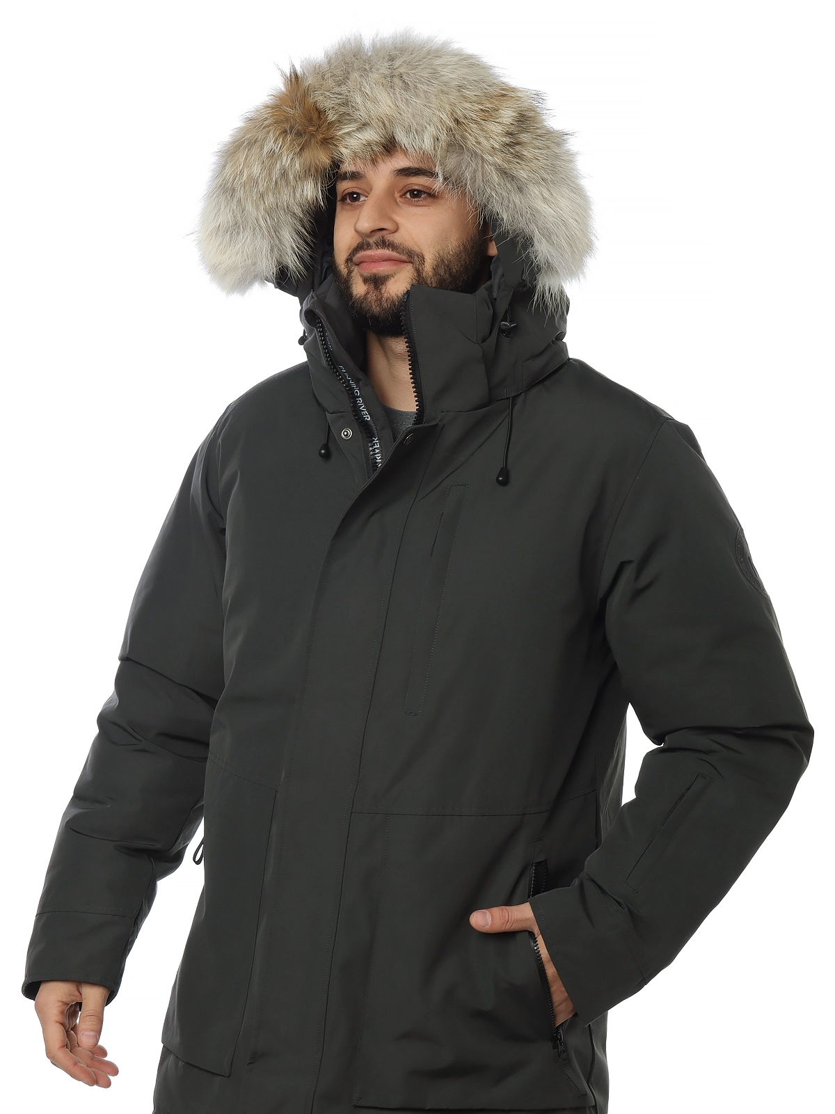 • Капюшон: съёмный, с съёмной меховой опушкой, что позволяет адаптировать куртку под разные погодные условия.