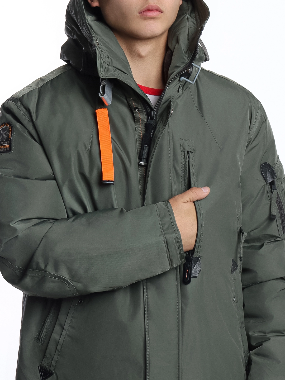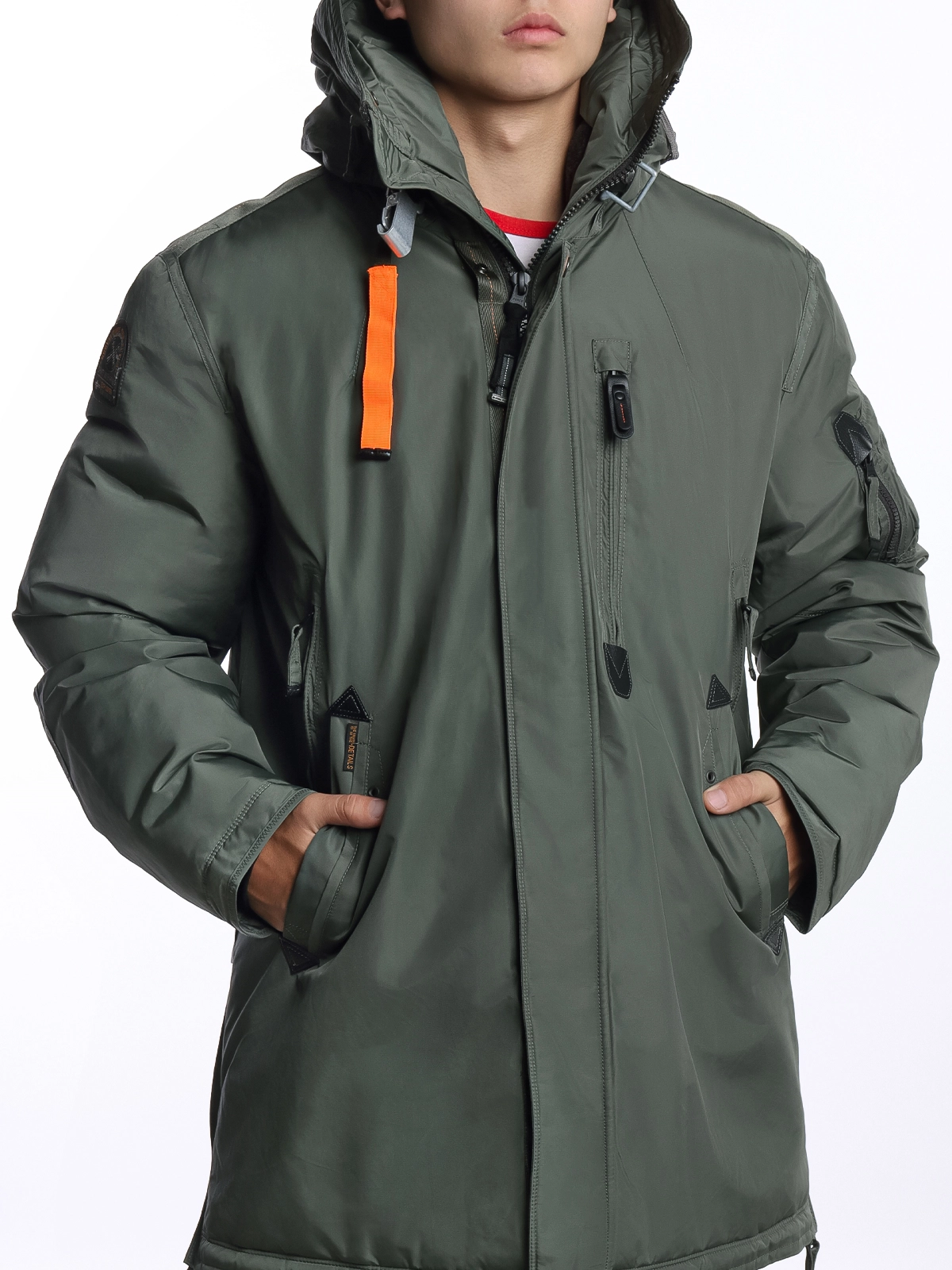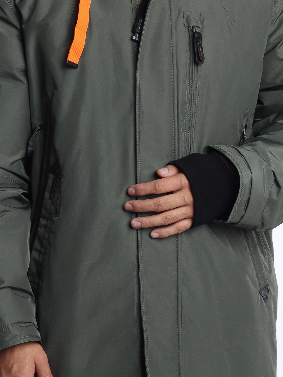 Для удобства предусмотрены нагрудный карман на молнии, карман на рукаве и боковые карманы на молнии — всё необходимое всегда под рукой и в безопасности. Удлинённый крой обеспечивает лучшую защиту от холода и добавляет современный стильный вид.