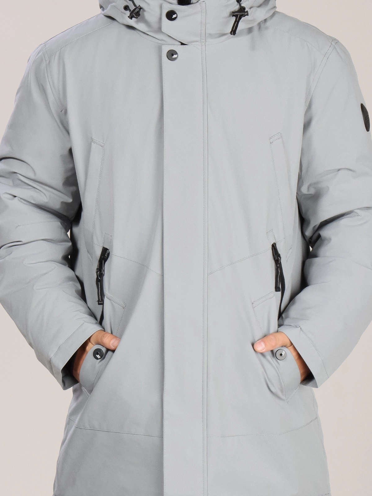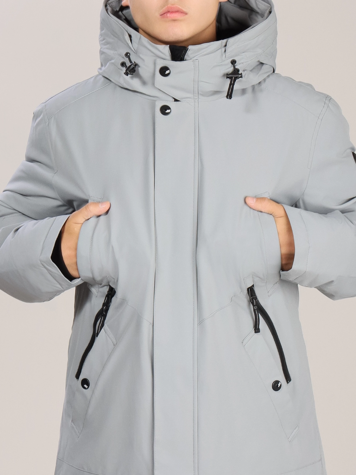 Удлинённый крой куртки добавляет дополнительную защиту и создаёт современный стильный силуэт.