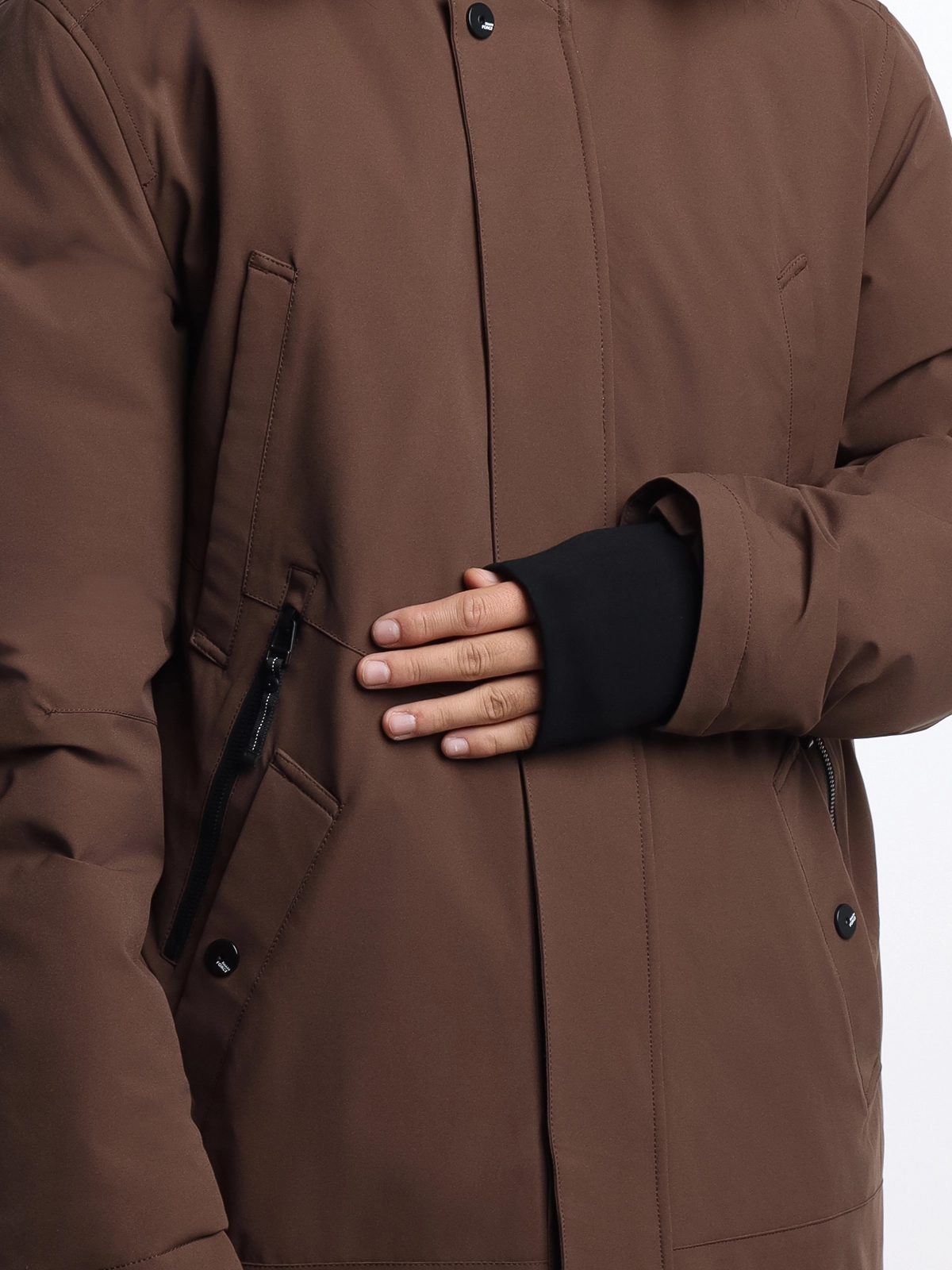 Удлинённый крой куртки добавляет дополнительную защиту и создаёт современный стильный силуэт.