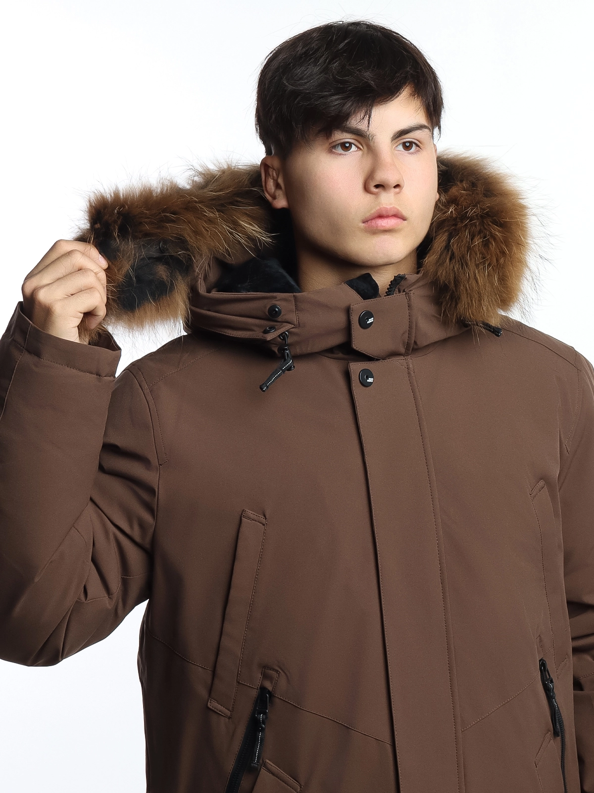- Капюшон: несъёмный со съёмной меховой опушкой для стиля и дополнительного тепла