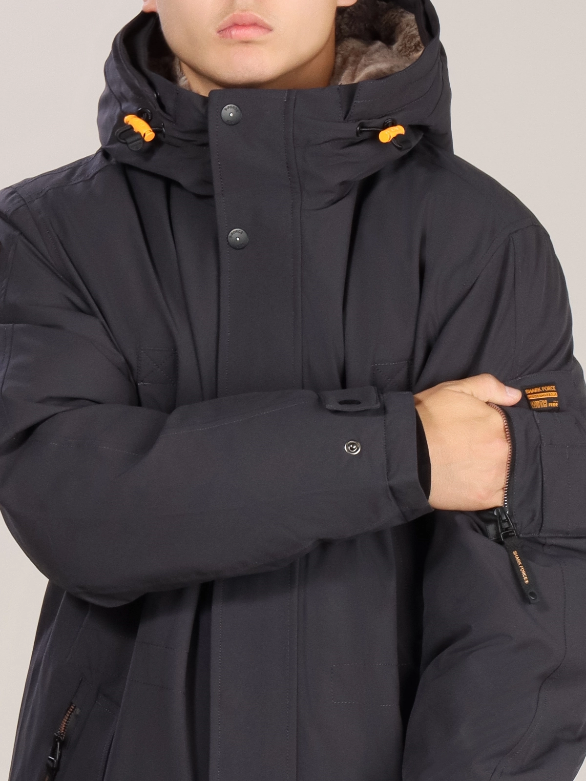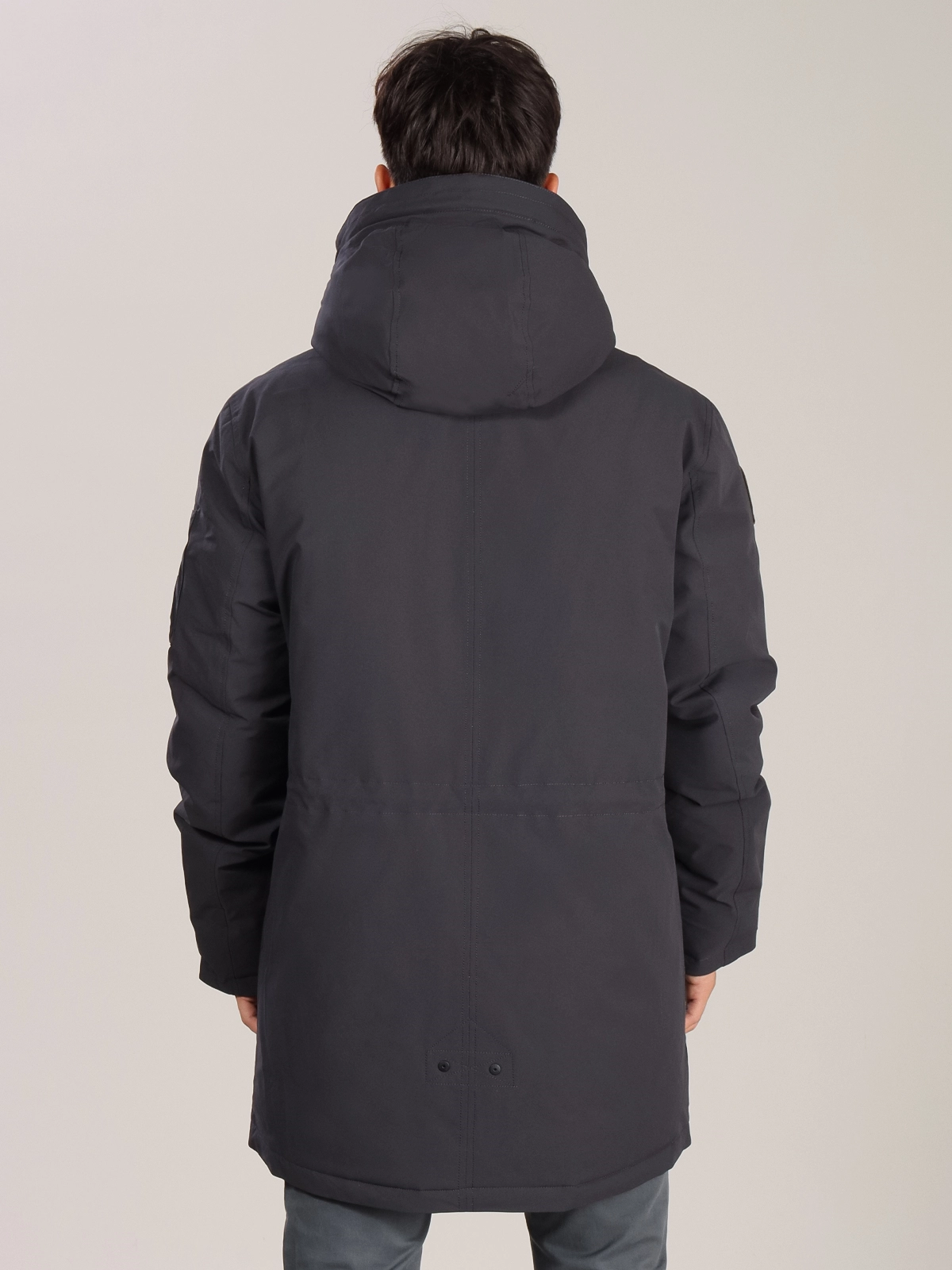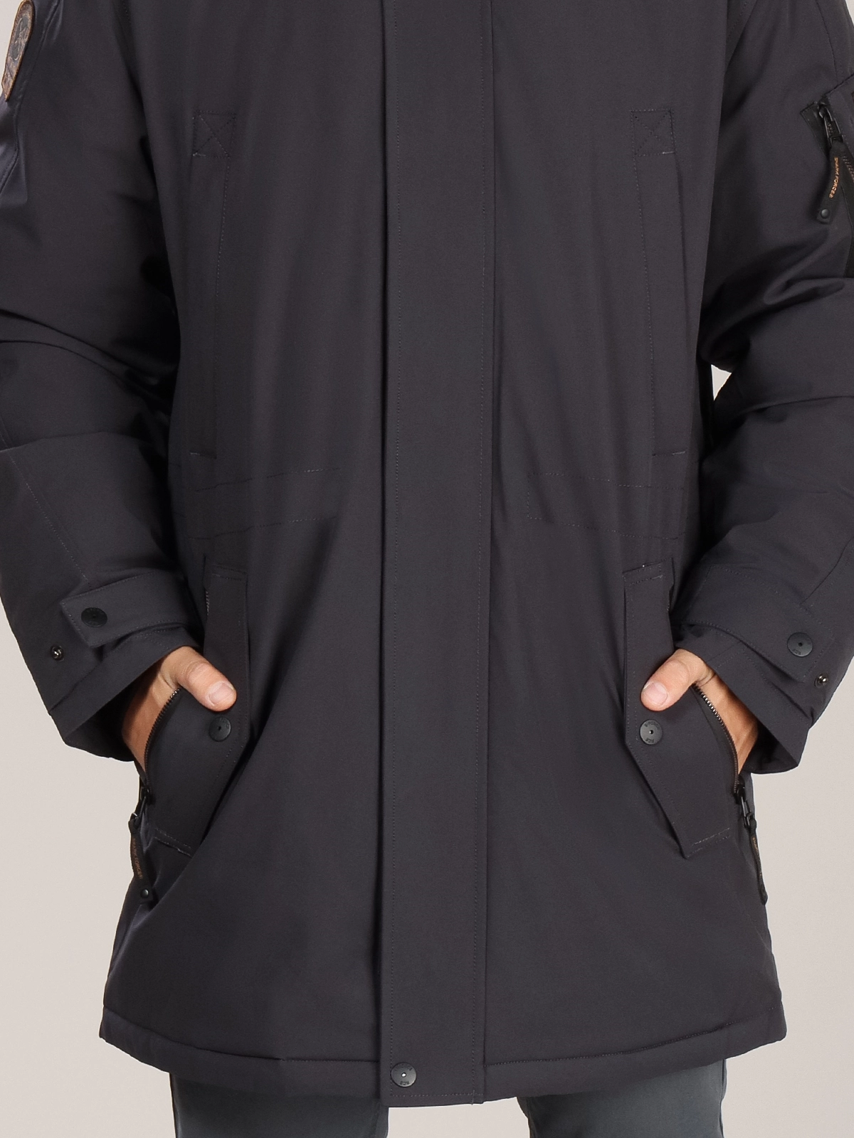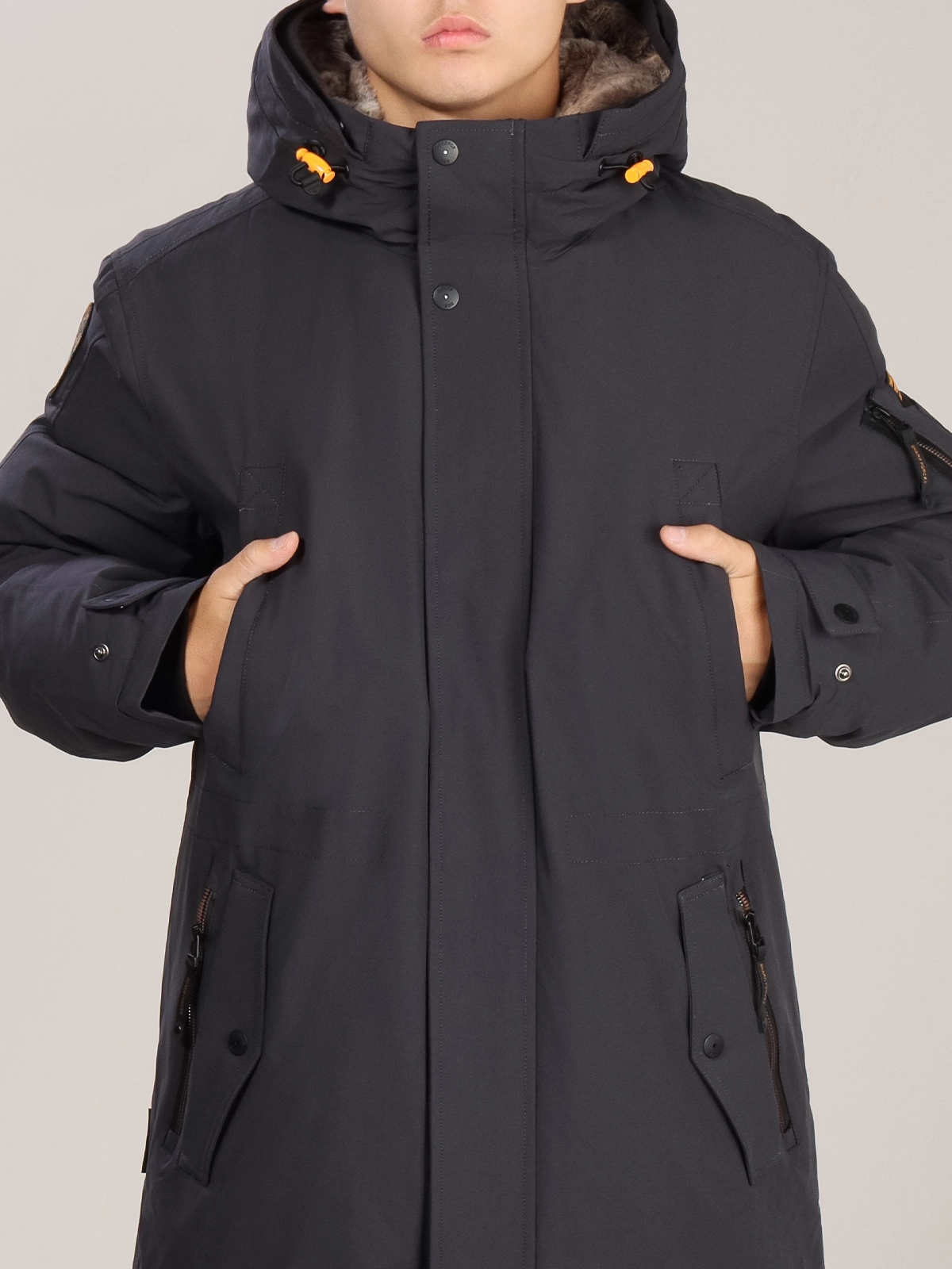 Удлинённый фасон обеспечивает дополнительную защиту от ветра и холода, а утеплённый воротник и несъёмный капюшон создают максимальный комфорт в непогоду.