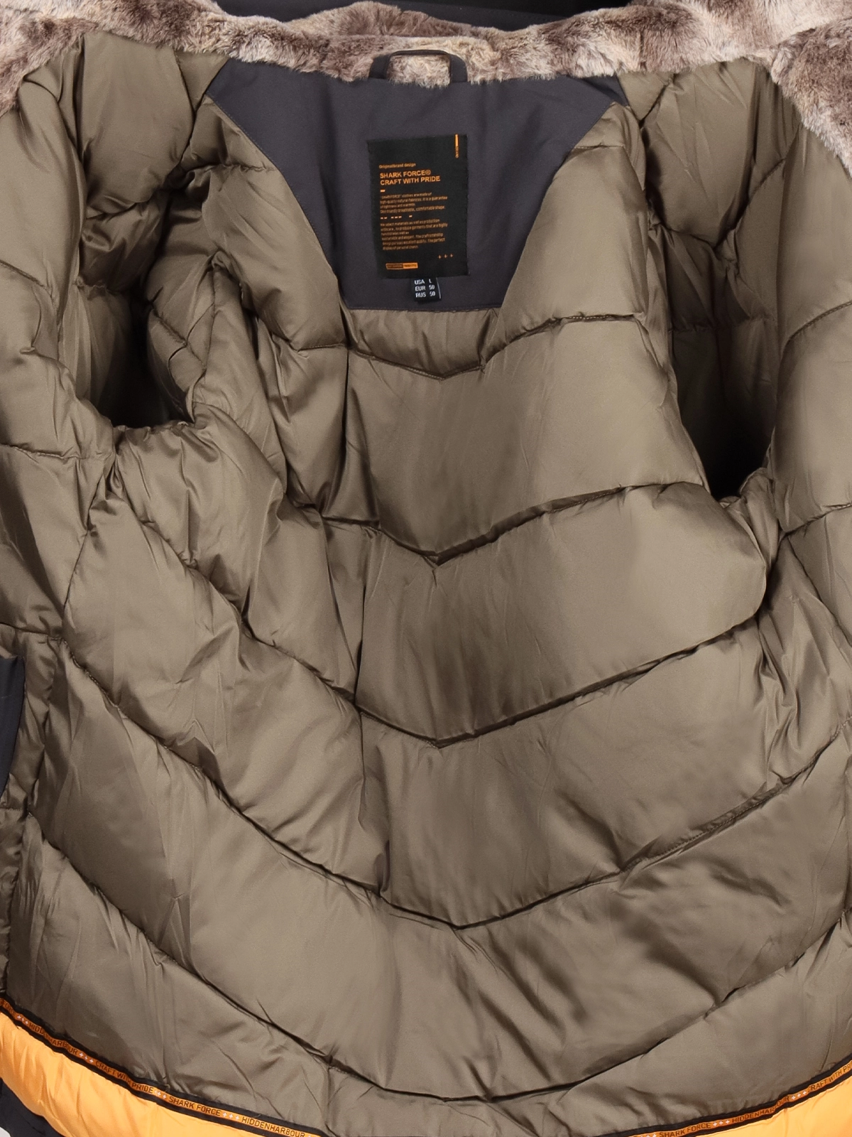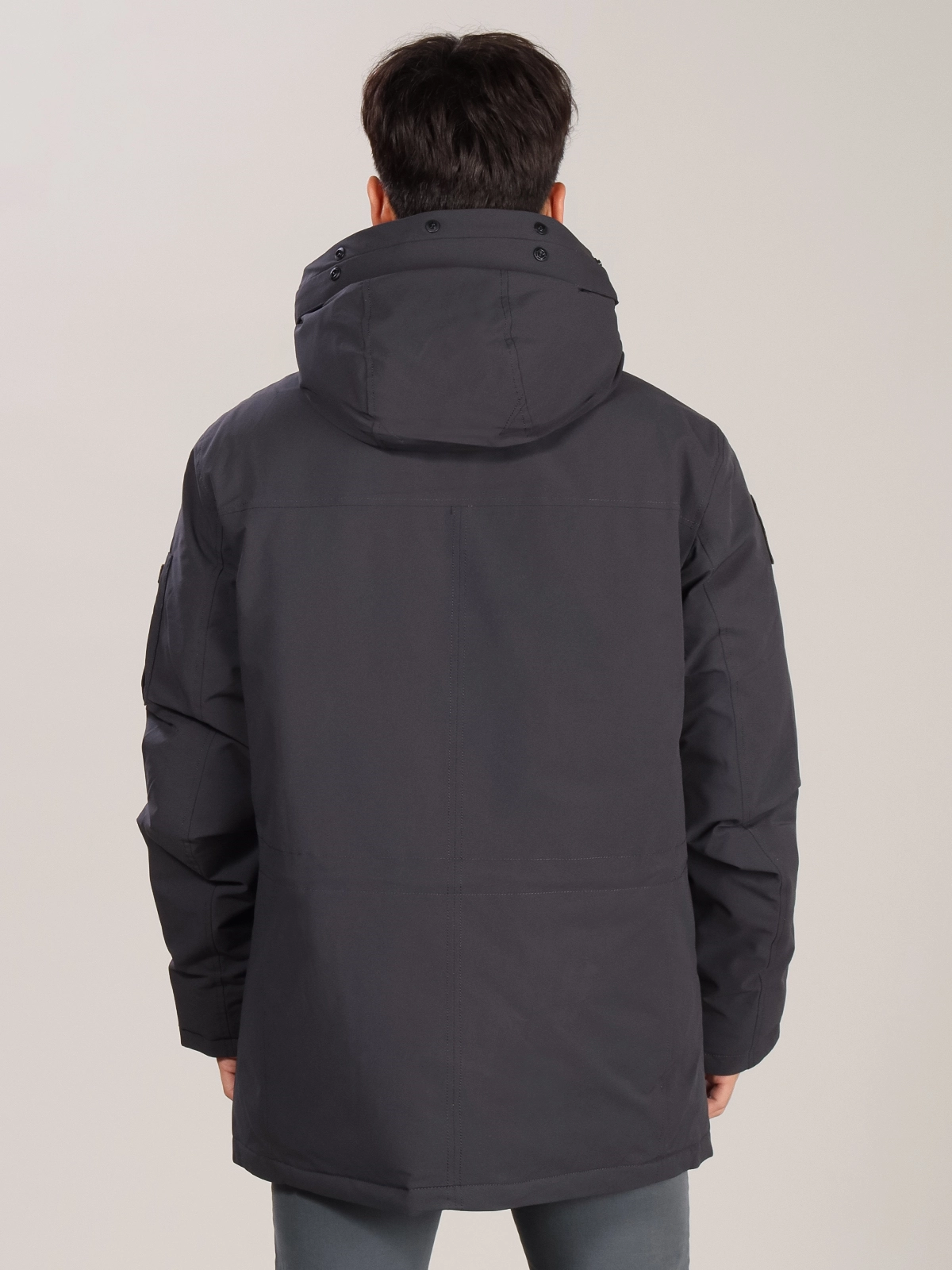 Для удобства предусмотрены боковые и нагрудные карманы на молнии, а также карман на рукаве — идеальное решение для хранения мелочей и личных вещей. Ветрозащитная планка надёжно защищает от продувания и помогает сохранить тепло внутри.