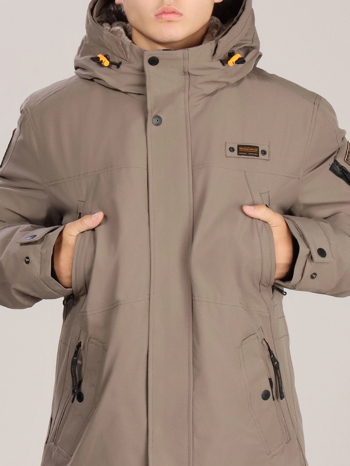 Материал: прочный и износостойкий полиэстер защищает от ветра и осадков, сохраняя тепло и комфорт в любую погоду. Утеплённый воротник и несъёмный капюшон обеспечивают дополнительную защиту от холода и ветра.