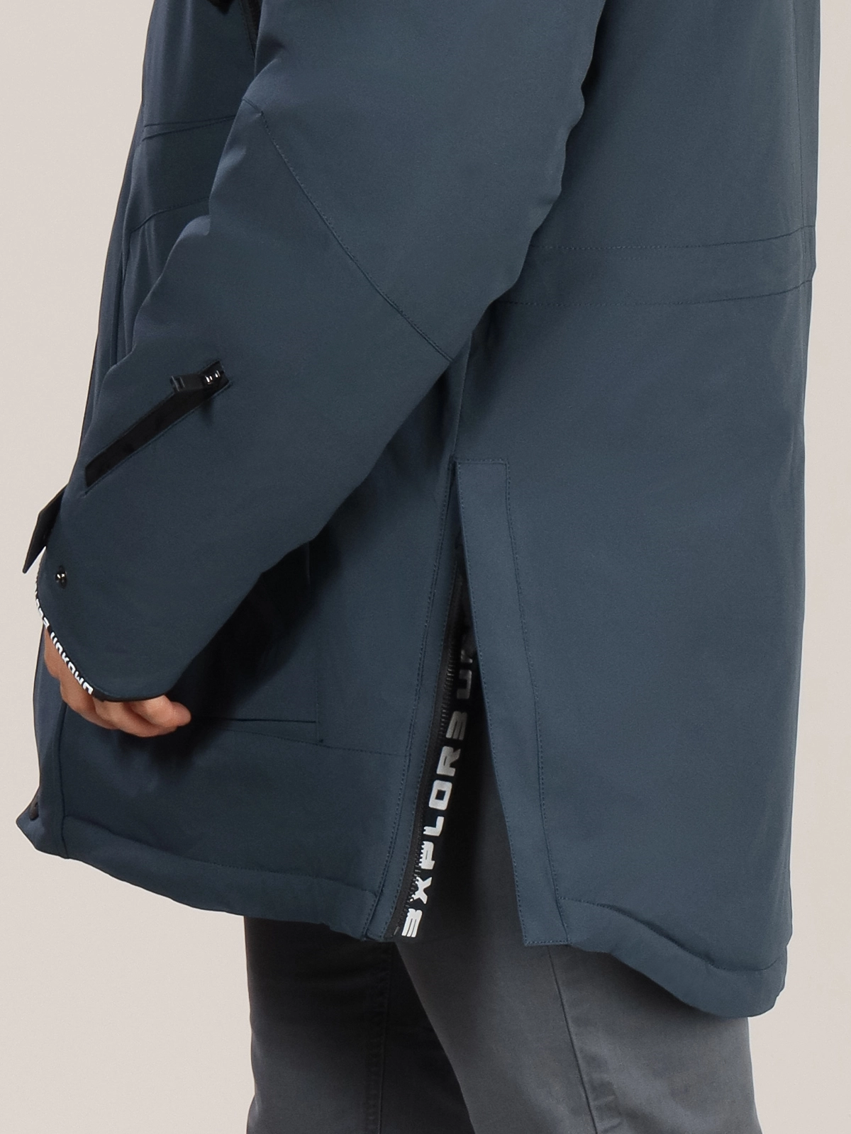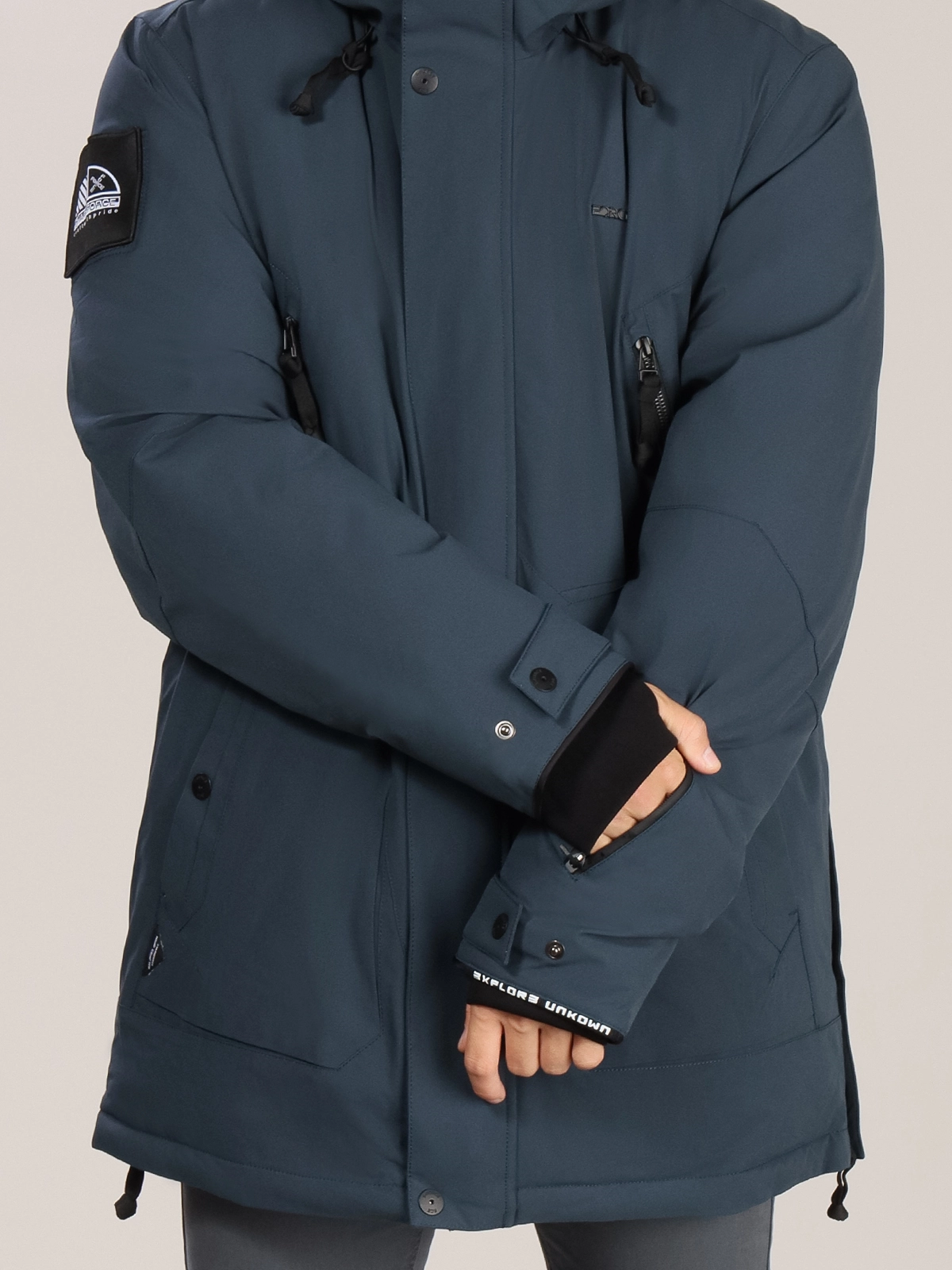 Несъёмный капюшон и ветрозащитная планка обеспечивают дополнительную защиту от холода и осадков. Манжеты с отверстием для пальца предотвращают попадание ветра внутрь рукавов и добавляют удобства при движении.