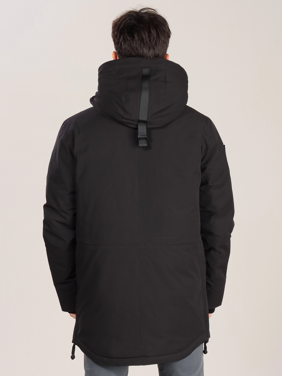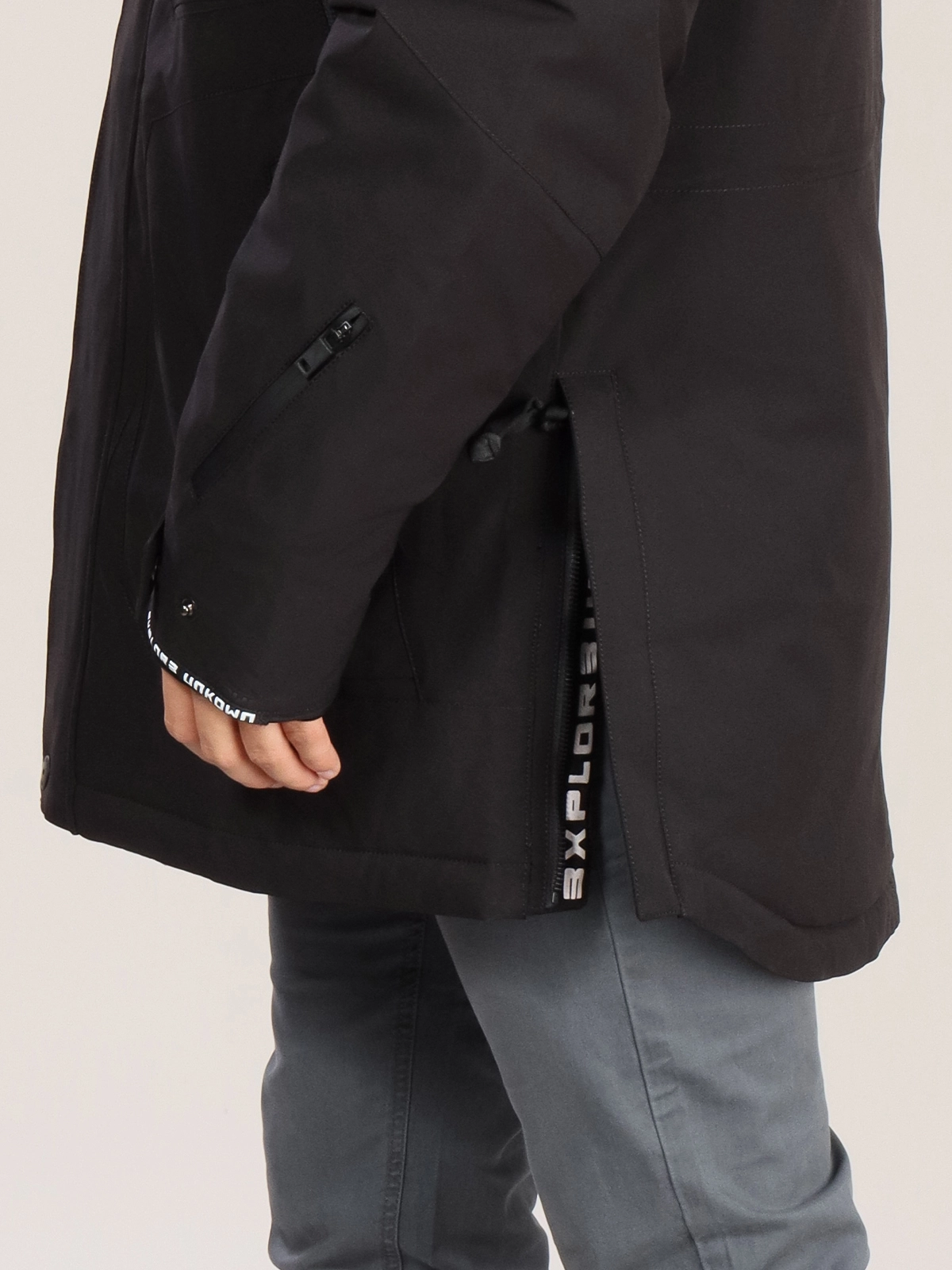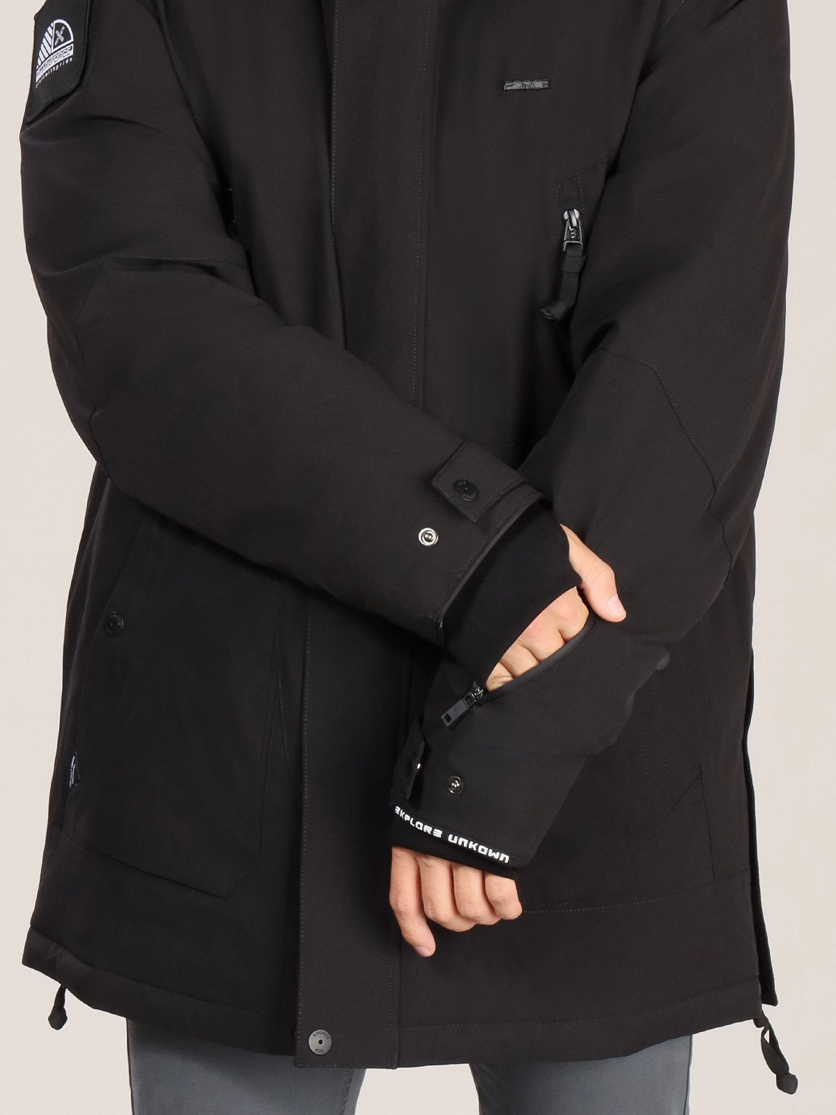 Несъёмный капюшон и ветрозащитная планка обеспечивают дополнительную защиту от холода и осадков. Манжеты с отверстием для пальца предотвращают попадание ветра внутрь рукавов и добавляют удобства при движении.