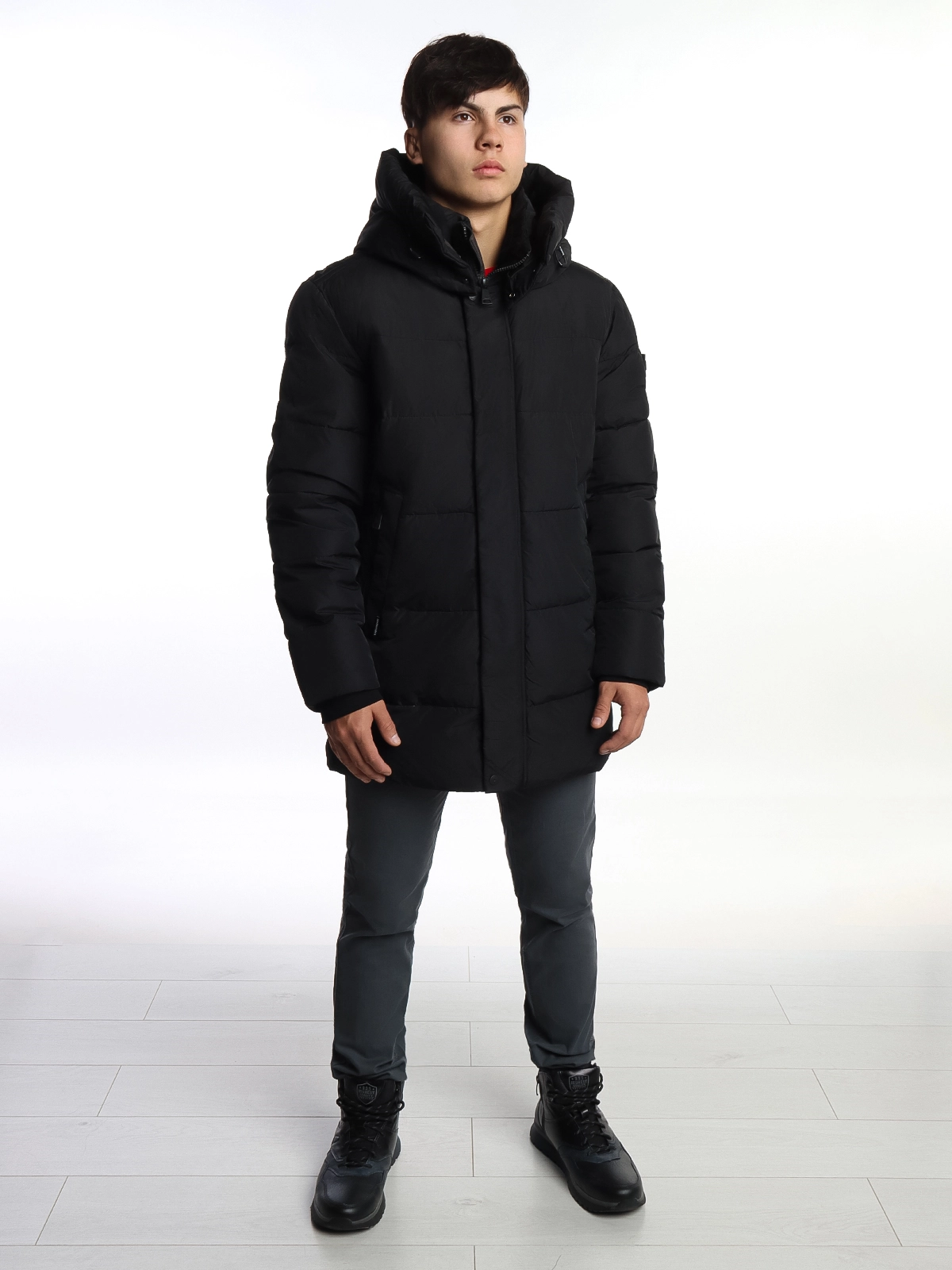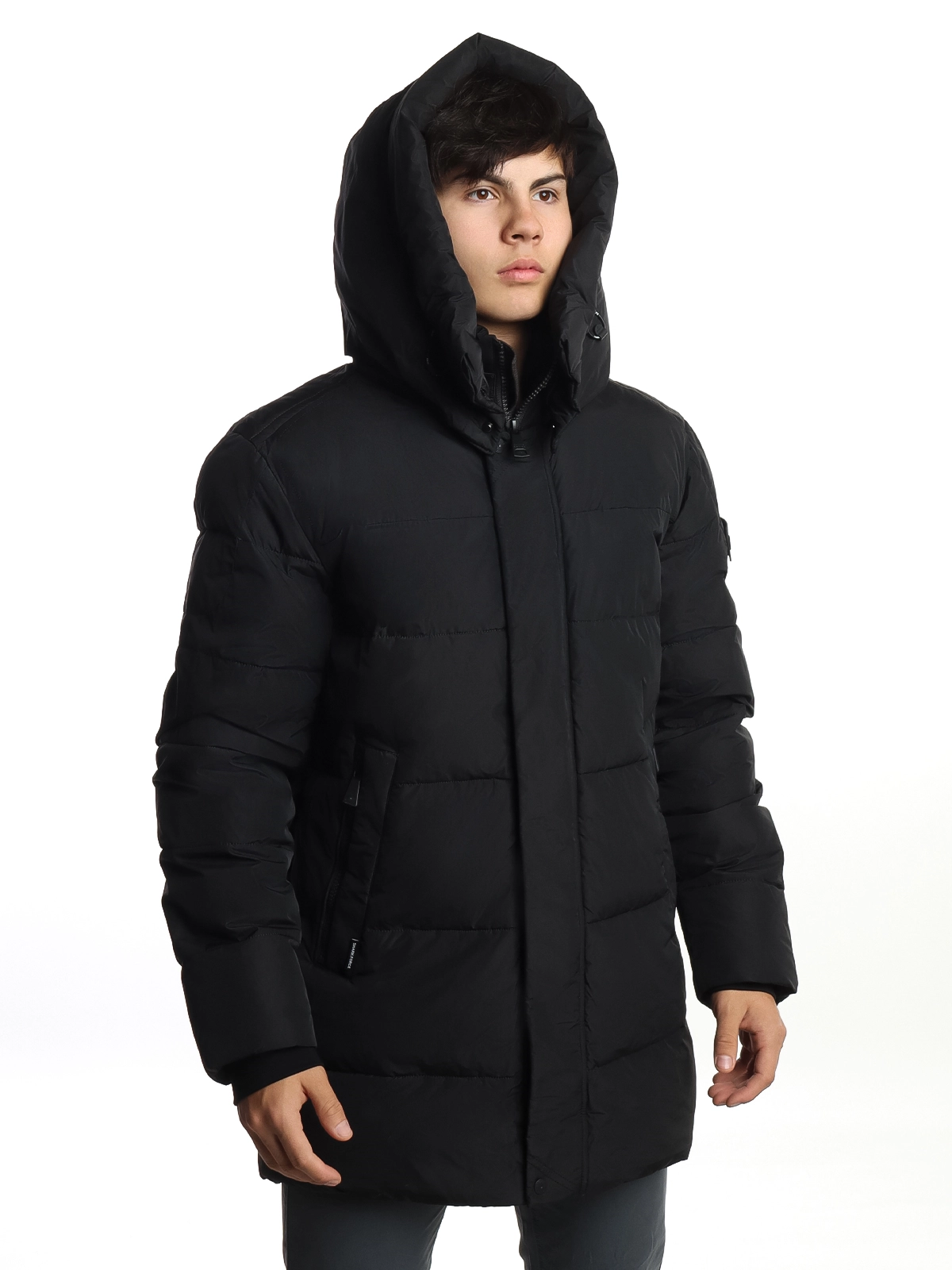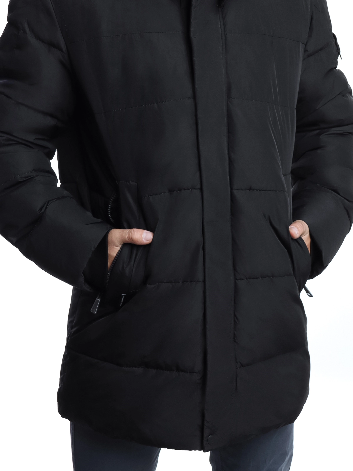 Выполнена из прочного полиэстера. Удлиненный фасон обеспечивает дополнительную защиту от холода, а ветрозащитная планка и манжеты препятствуют проникновению холодного воздуха.