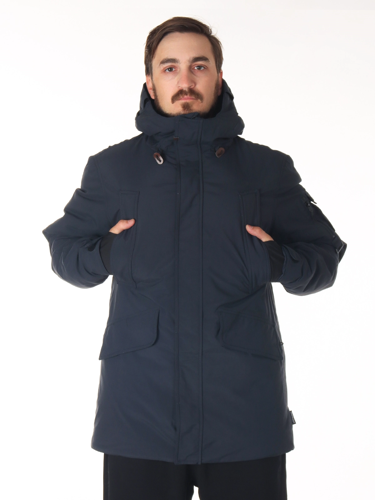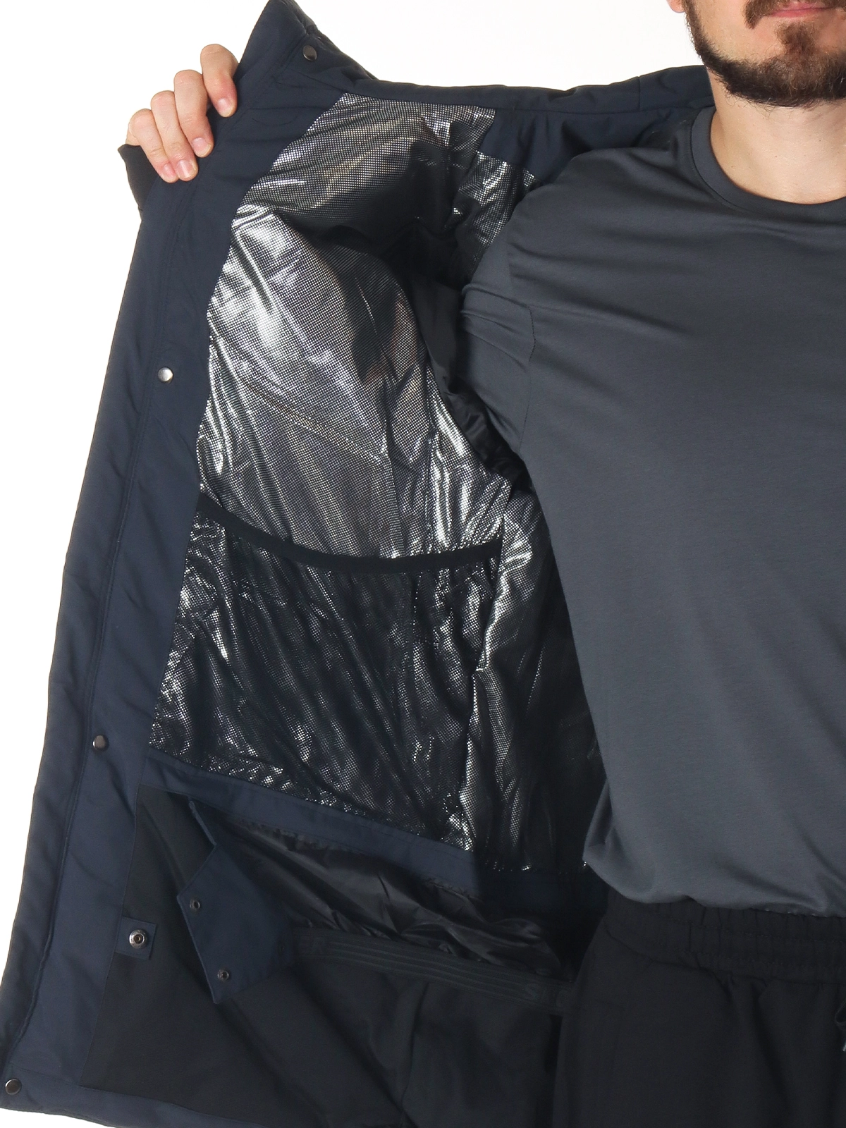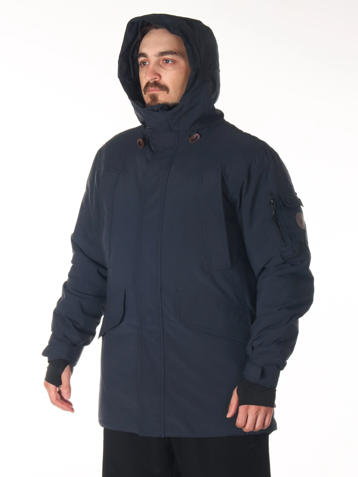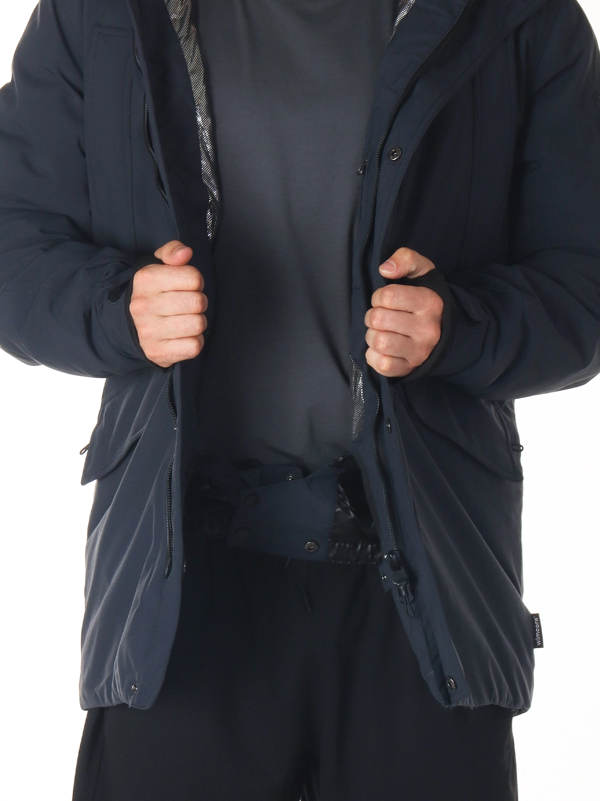 Модель оснащена несъемным капюшоном и фольгированной вставкой на спине для дополнительного тепла. Практичные карманы включают боковые и нагрудные карманы на молнии, а также внутренние карманы. Манжеты на липучке и через палец обеспечивают надежное прилегание рукавов и защиту от продувания.