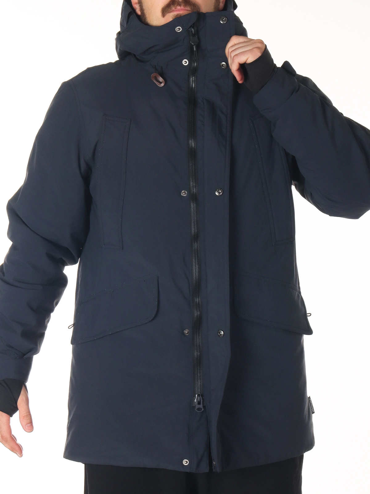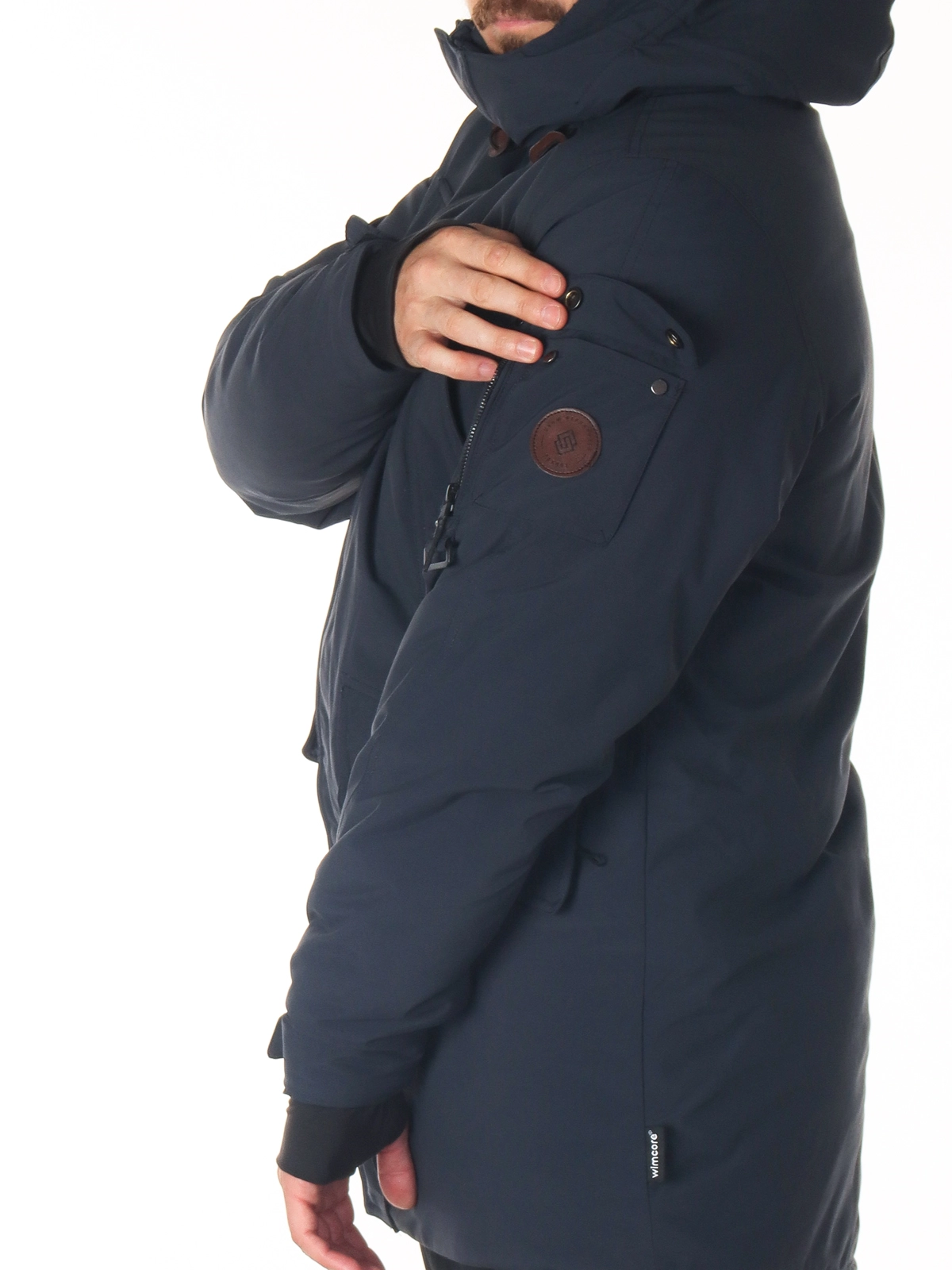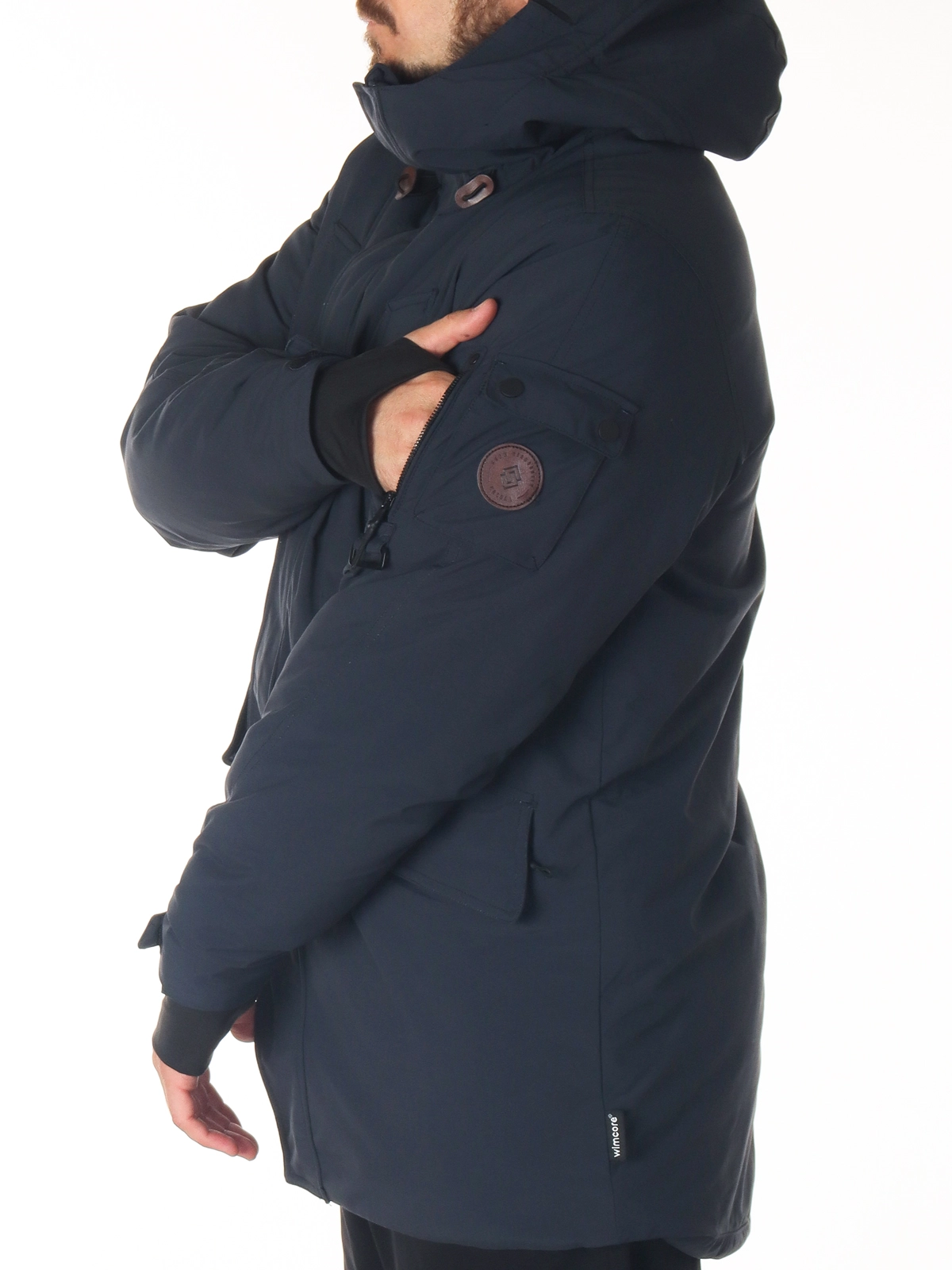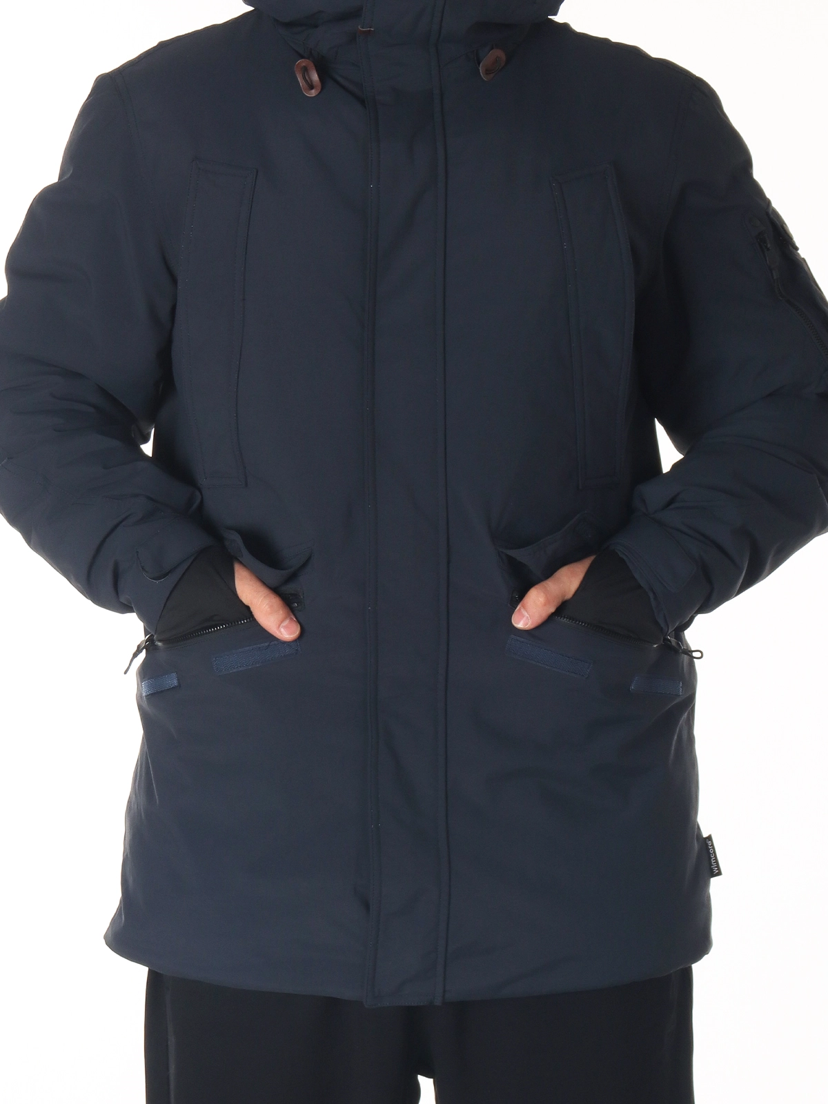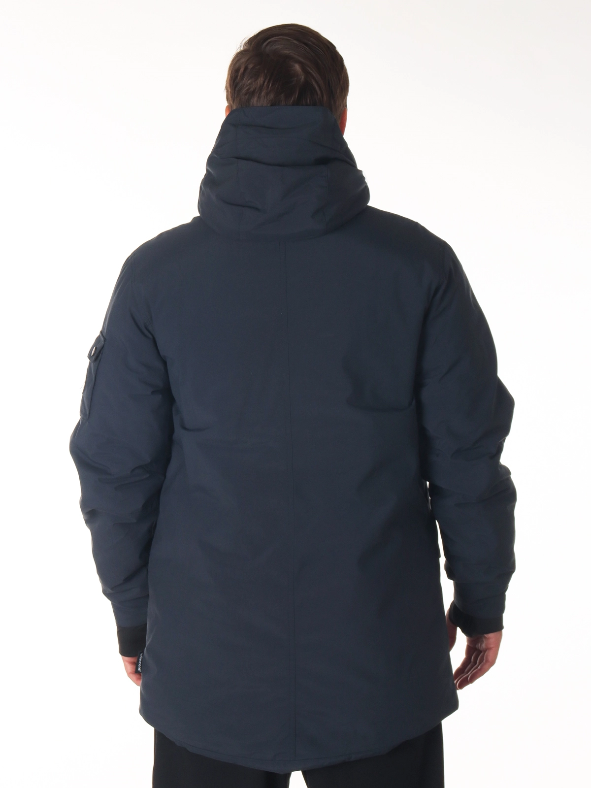 Модель оснащена несъемным капюшоном и фольгированной вставкой на спине для дополнительного тепла. Практичные карманы включают боковые и нагрудные карманы на молнии, а также внутренние карманы. Манжеты на липучке и через палец обеспечивают надежное прилегание рукавов и защиту от продувания.