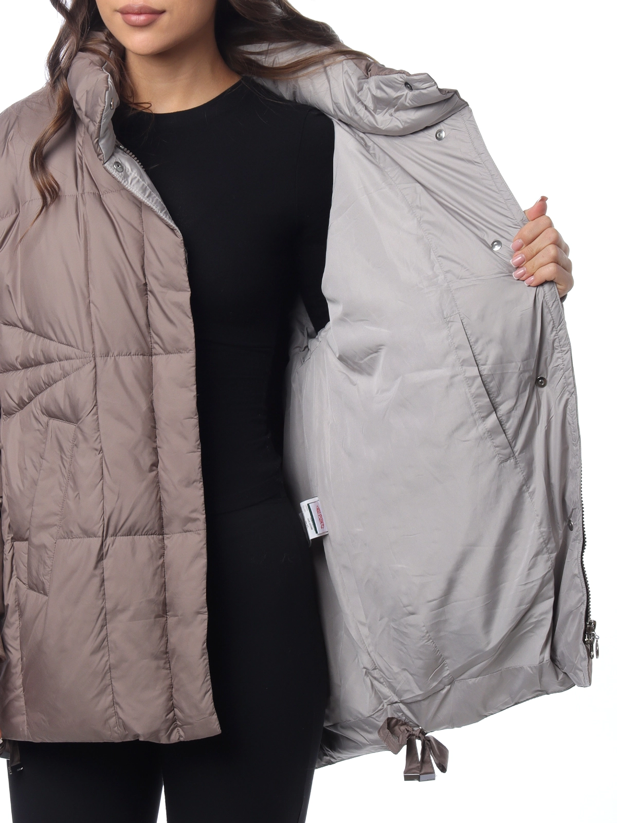 - Капюшон: убирается в воротник, что делает модель универсальной и удобной в использовании.