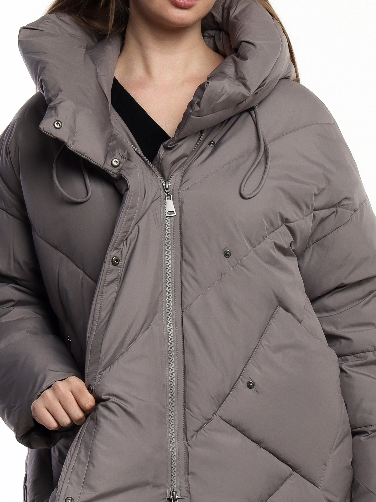 Куртка оснащена боковыми карманами и внутренним карманом для удобного хранения мелочей. Застёжка на молнию дополнена ветрозащитной планкой, что предотвращает попадание холодного воздуха внутрь. Кулиса по нижнему краю позволяет регулировать посадку, сохраняя тепло и создавая аккуратный силуэт.