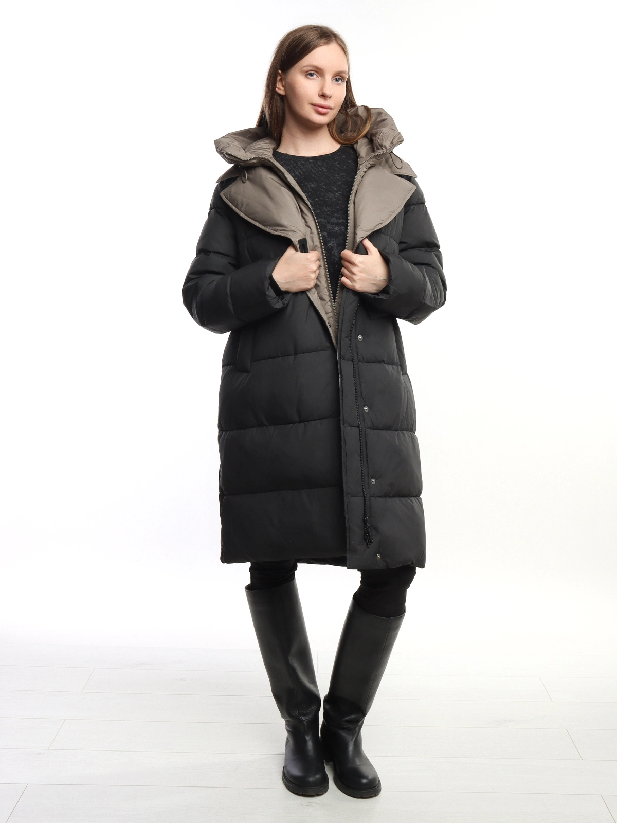 - Модель: Длинное пальто-пуховик