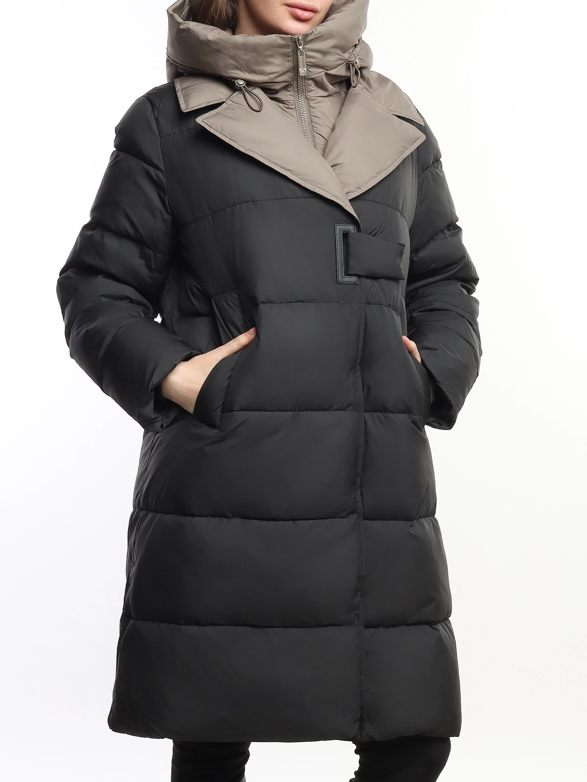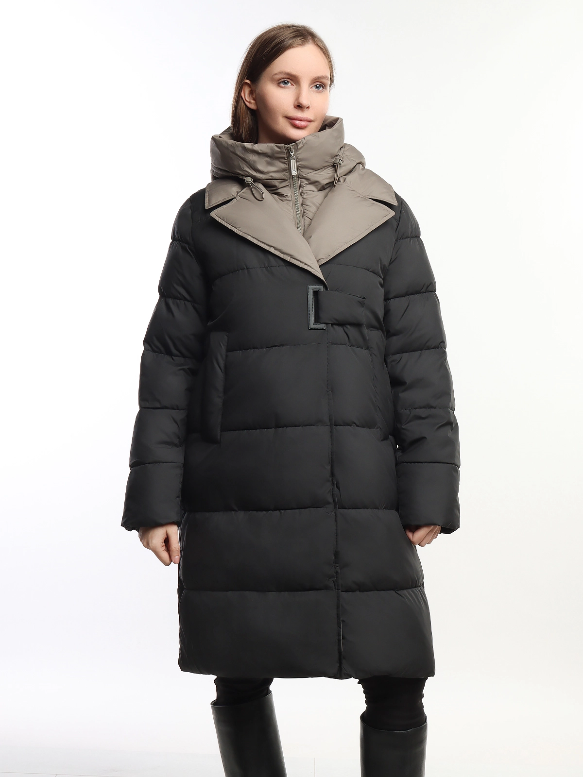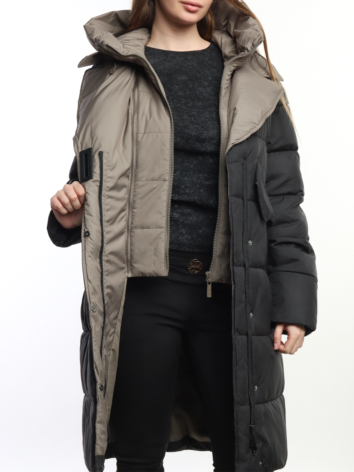 Женское длинное зимнее пальто-пуховик Pure Life Black-Beige