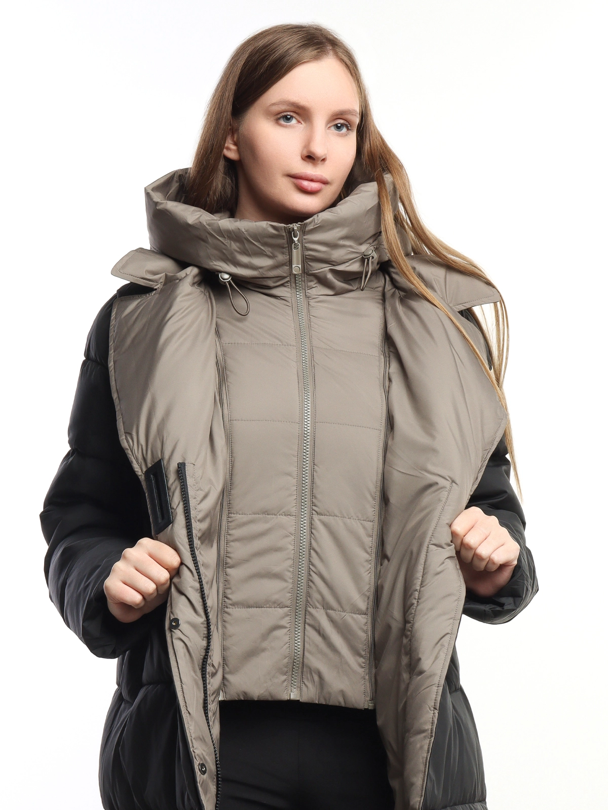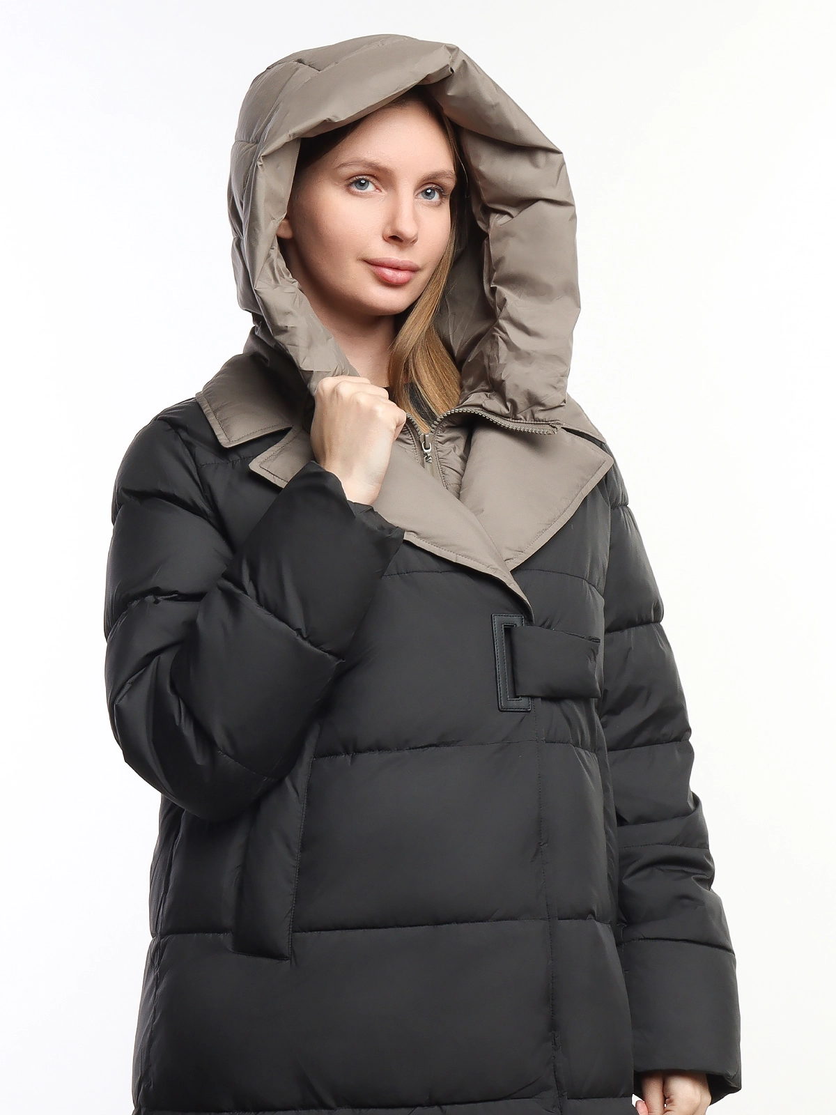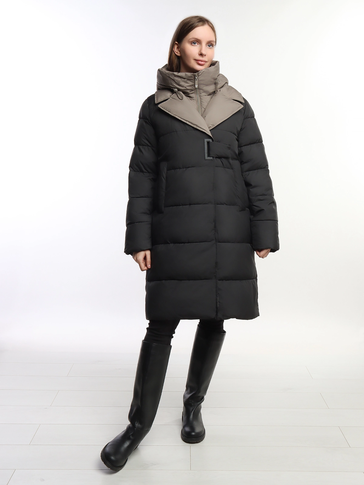 Женское длинное зимнее пальто-пуховик Pure Life Black-Beige