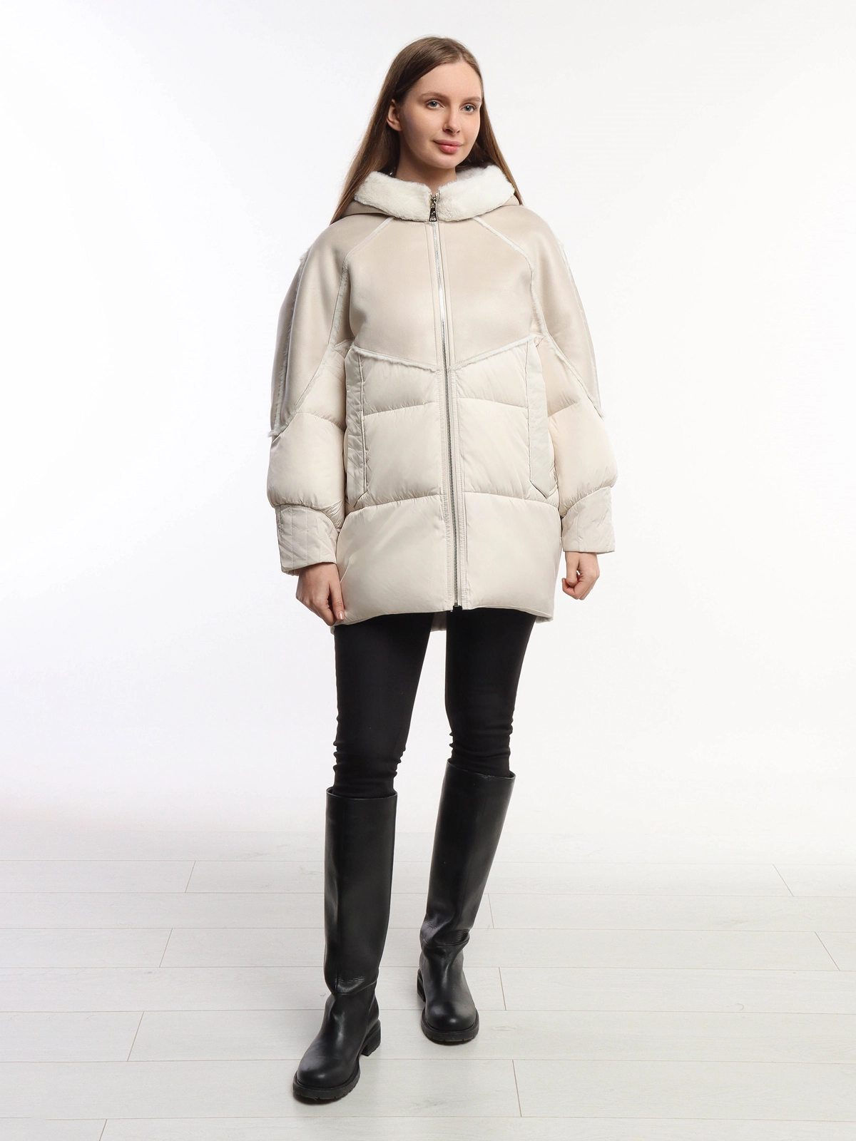 Эта женская дубленка идеально сочетает стиль и функциональность, создавая современный и уютный образ для повседневной носки в холодное время года.